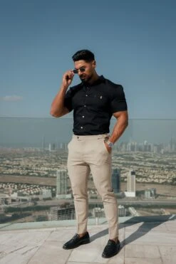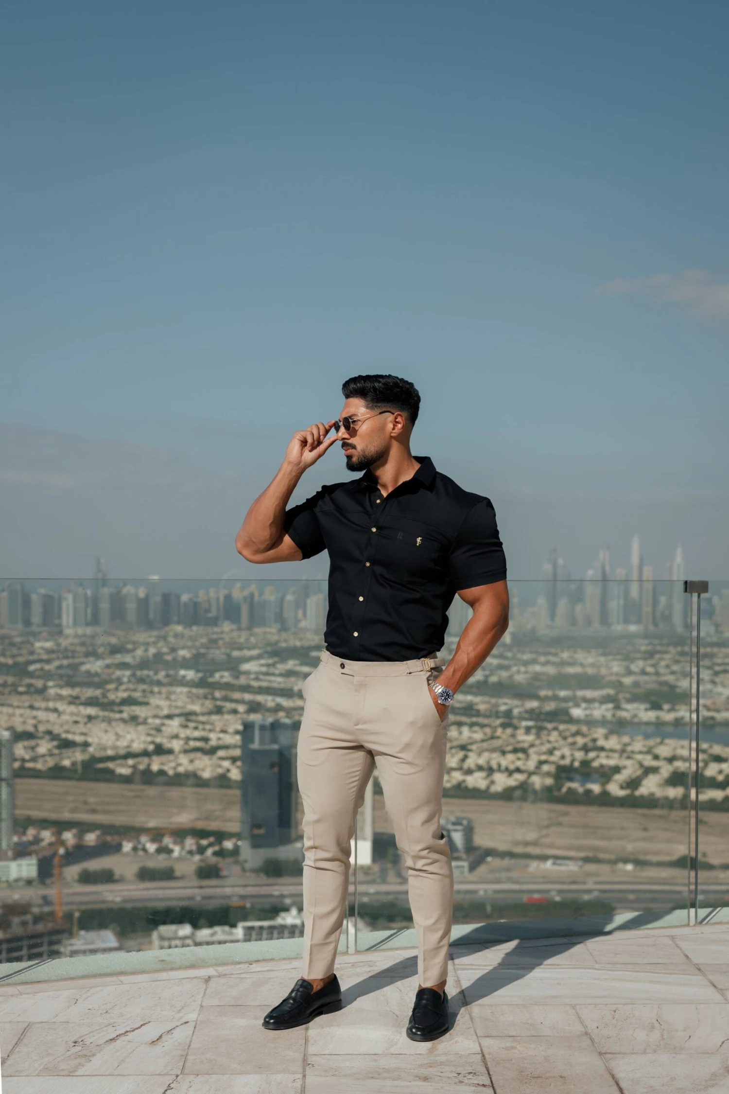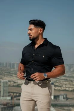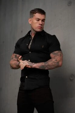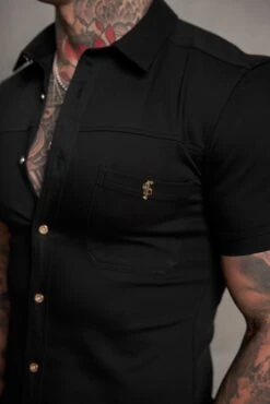 Father Sons Super Slim Stretch Black Denim Short Sleeve with Horizontal Seam and Pocket – FS954