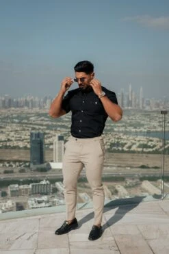 Made of the finest denim stretch cotton featuring the Father Sons emblem. The shirt is also made up of Elastane, this allows the shirt to stretch for the perfect fitted shirt. This design is for the gentleman looking for a super slim fit.