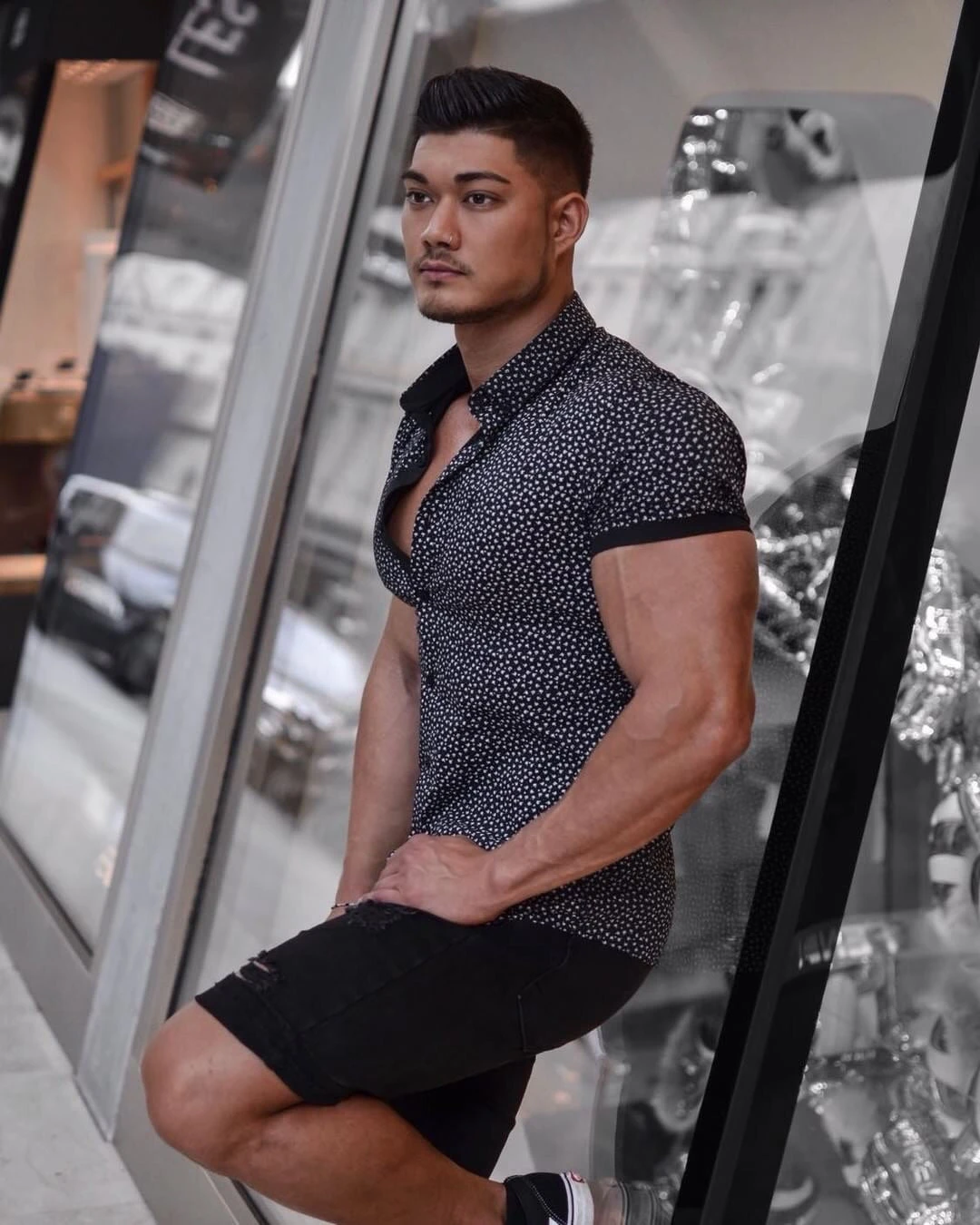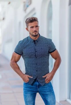 Father Sons Super Slim Stretch Black & White Dandy Print Short Sleeve FS416