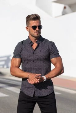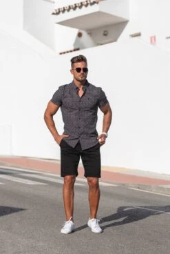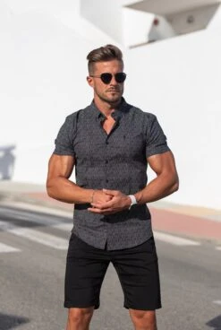 Father Sons Super Slim Stretch Black & White Multi Dot Print Shirt Sleeve Shirt – FS695