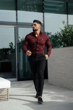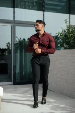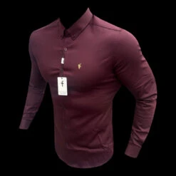 Father Sons Super Slim Stretch Burgundy Denim Long Sleeve with Gold Metal Decal and Button Down Collar – FS1046