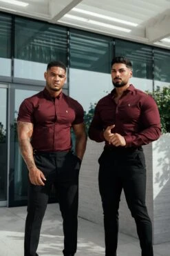 Father Sons Super Slim Stretch Burgundy Denim Long Sleeve with Gold Metal Decal and Button Down Collar – FS1046