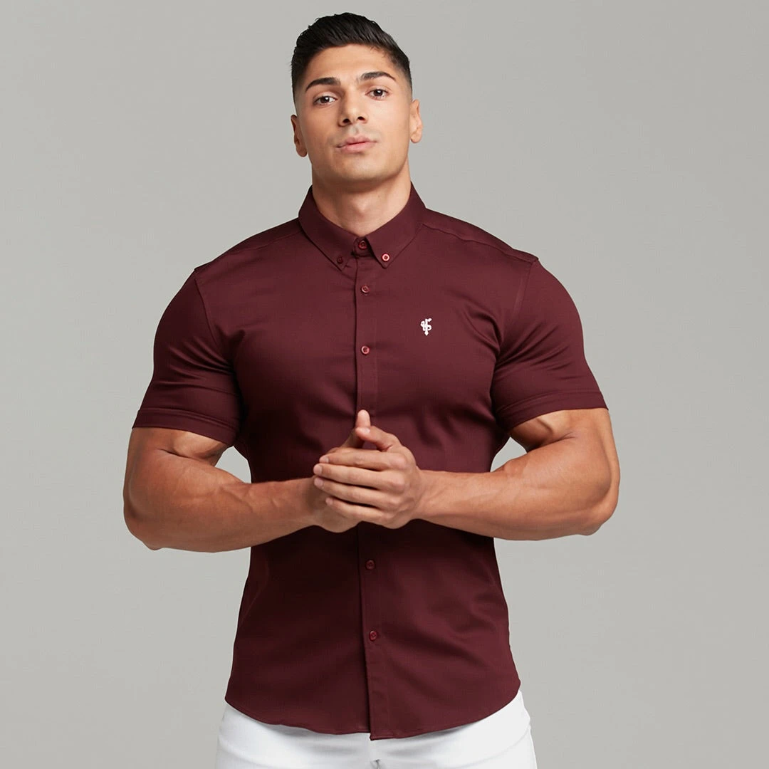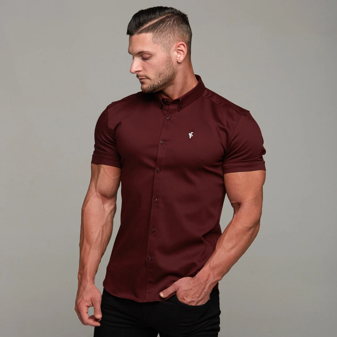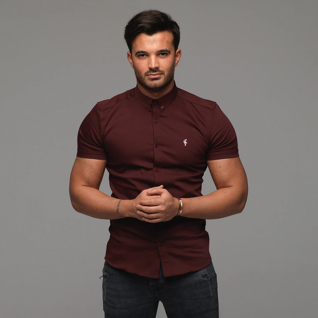 Father Sons Super Slim Stretch Burgundy Denim Short Sleeve – FS204Â