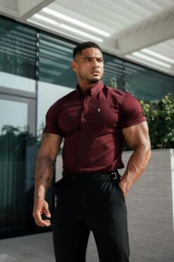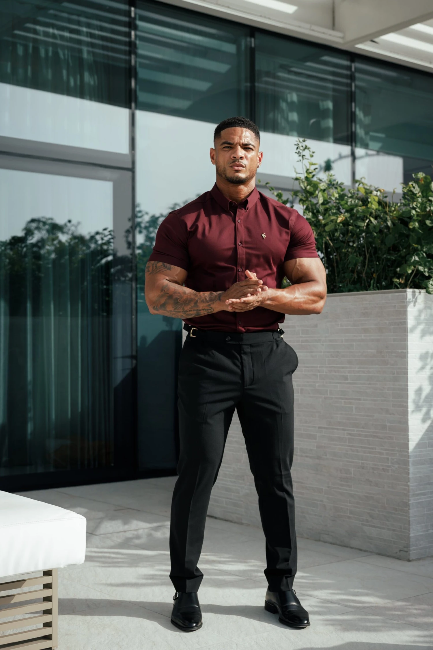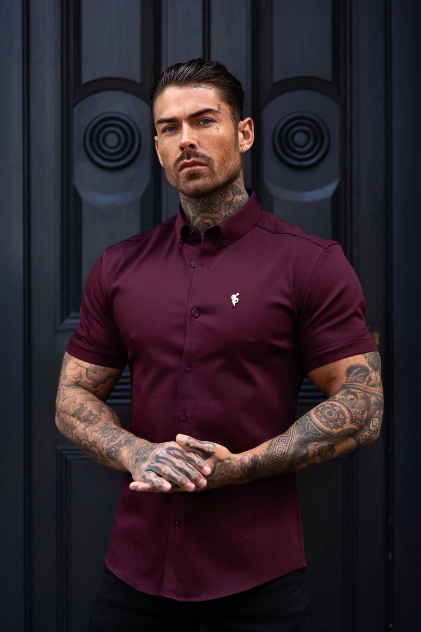 Father Sons Super Slim Stretch Burgundy Denim Short Sleeve with Gold Metal Decal and Buttons – FS1045