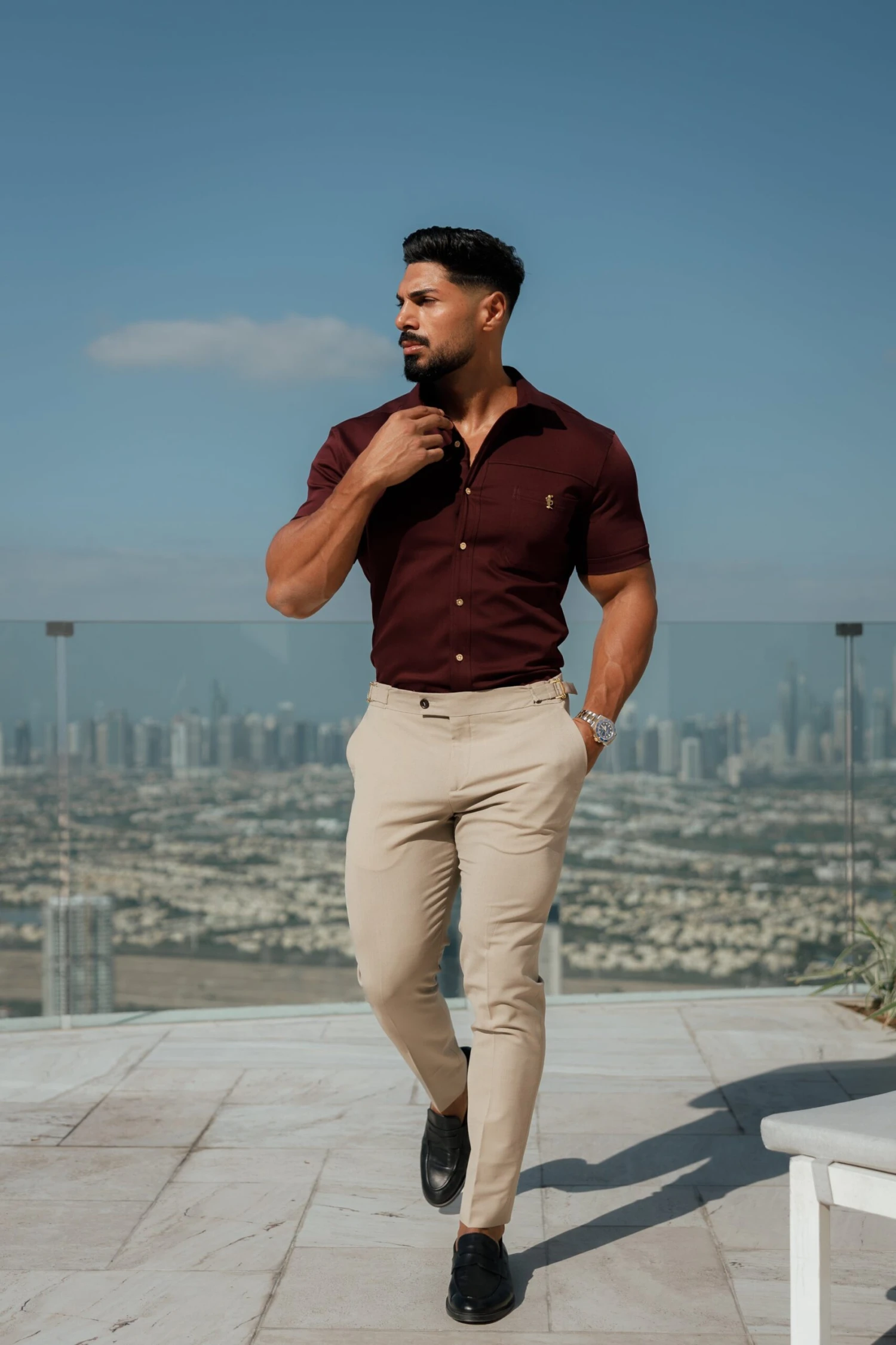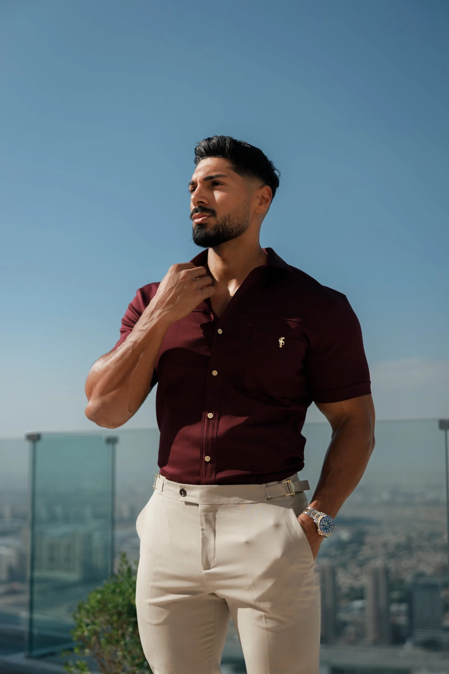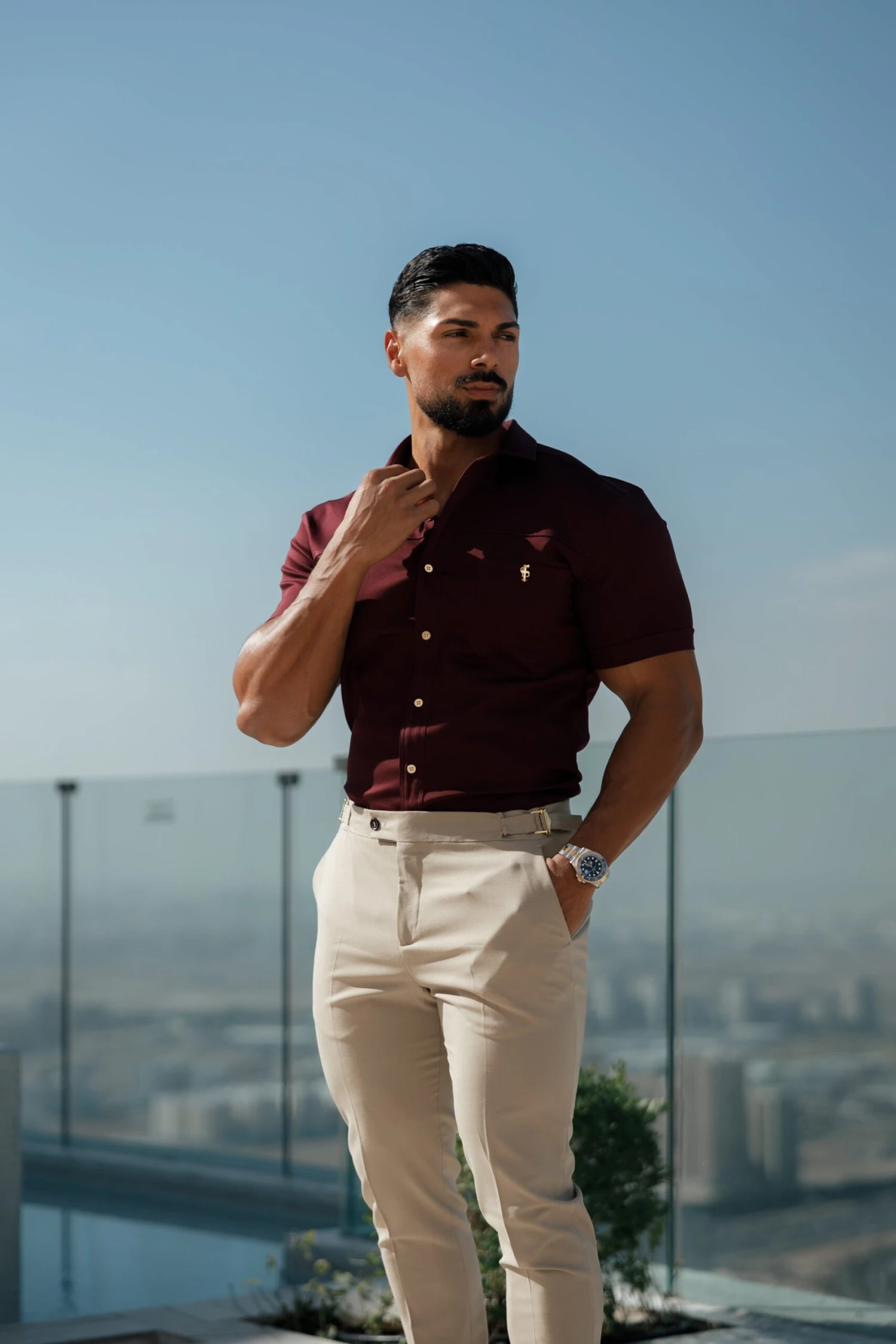 Made of the finest denim stretch cotton featuring the Father Sons emblem. The shirt is also made up of Elastane, this allows the shirt to stretch for the perfect fitted shirt. This design is for the gentleman looking for a super slim fit.
