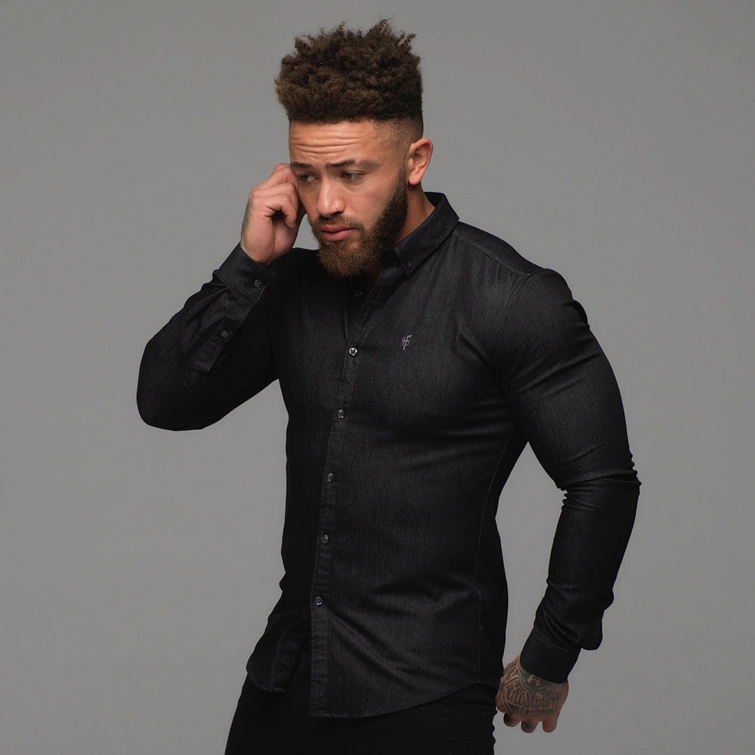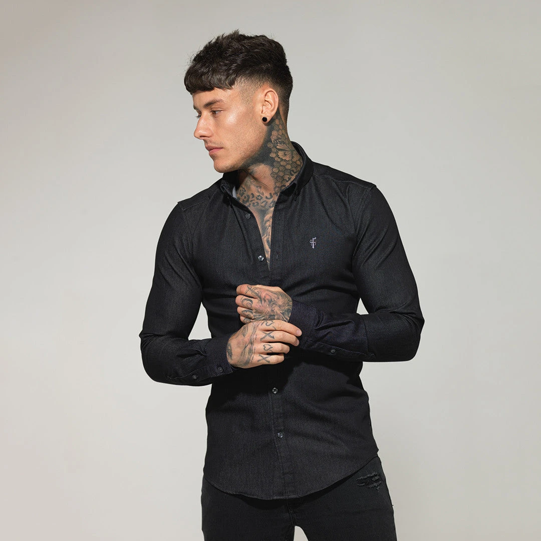 Father Sons Super Slim Stretch Charcoal Black Denim Long Sleeve – FS168