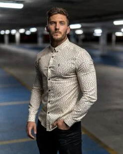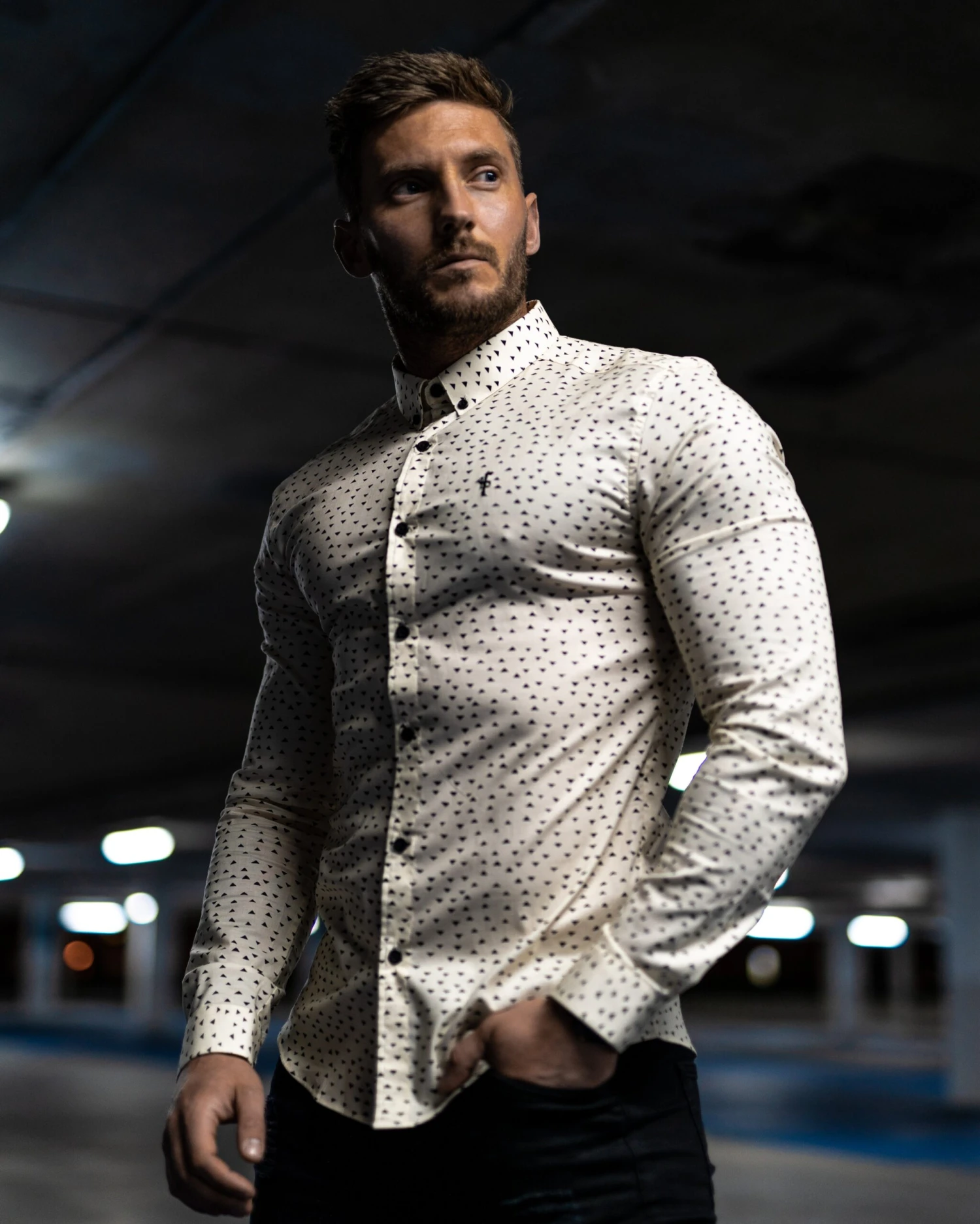 Father Sons Super Slim Stretch Classic Cream and Black Poly Print Long Sleeve – FS472