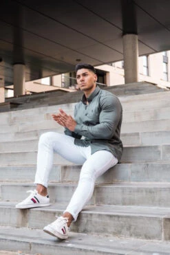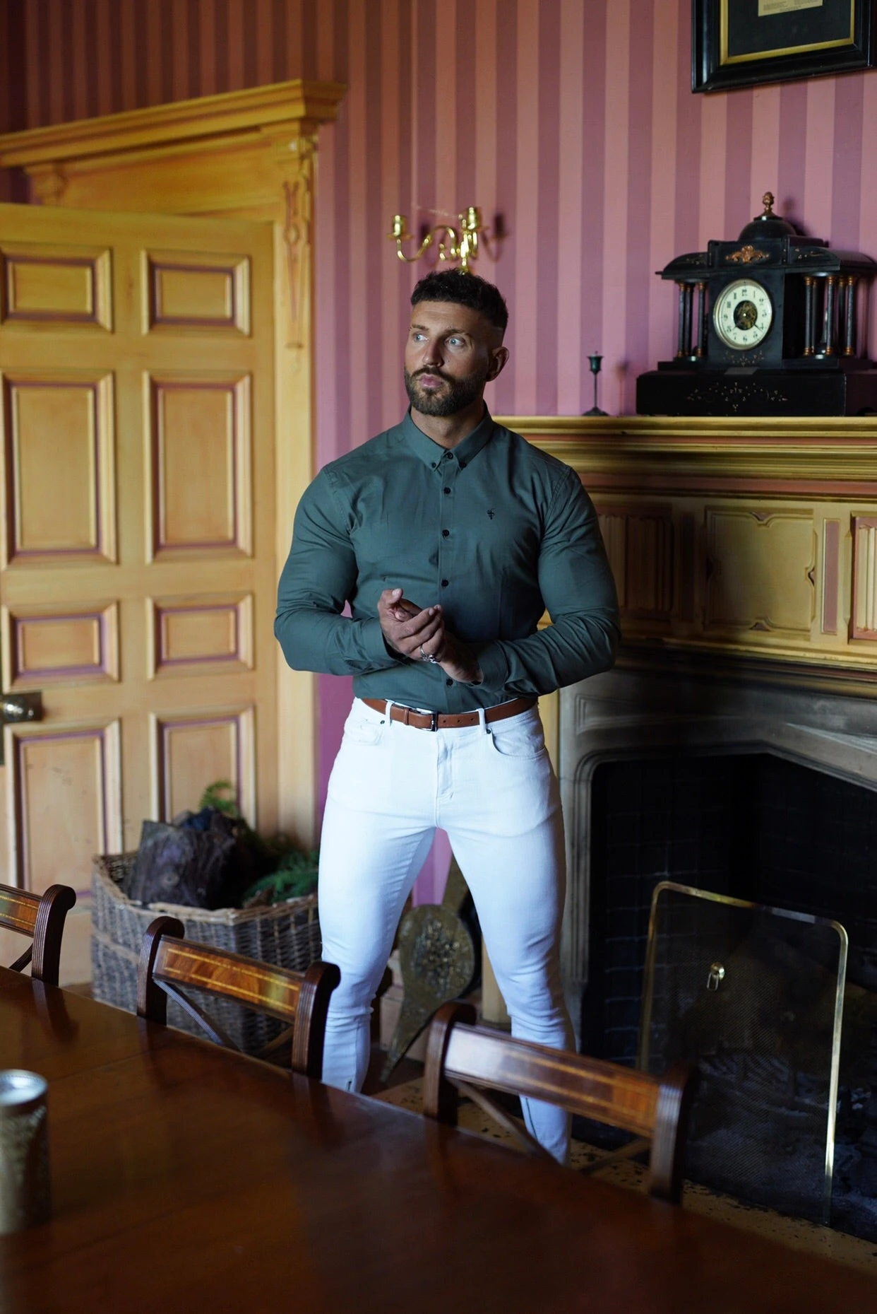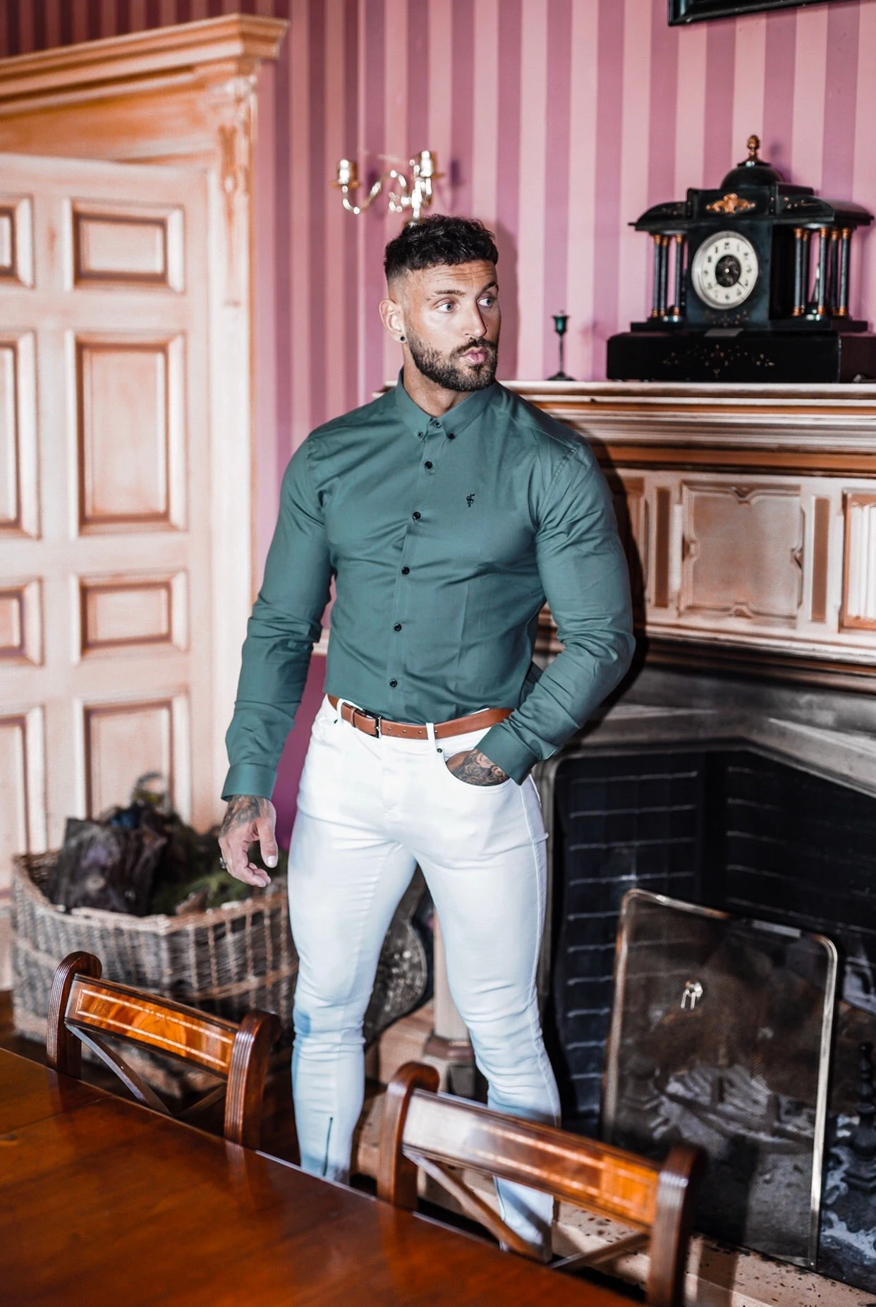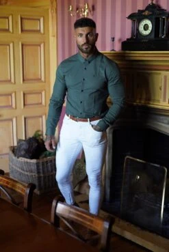 Father Sons Super Slim Stretch Classic Khaki Oxford Shirt (Black embroidery) – FS553