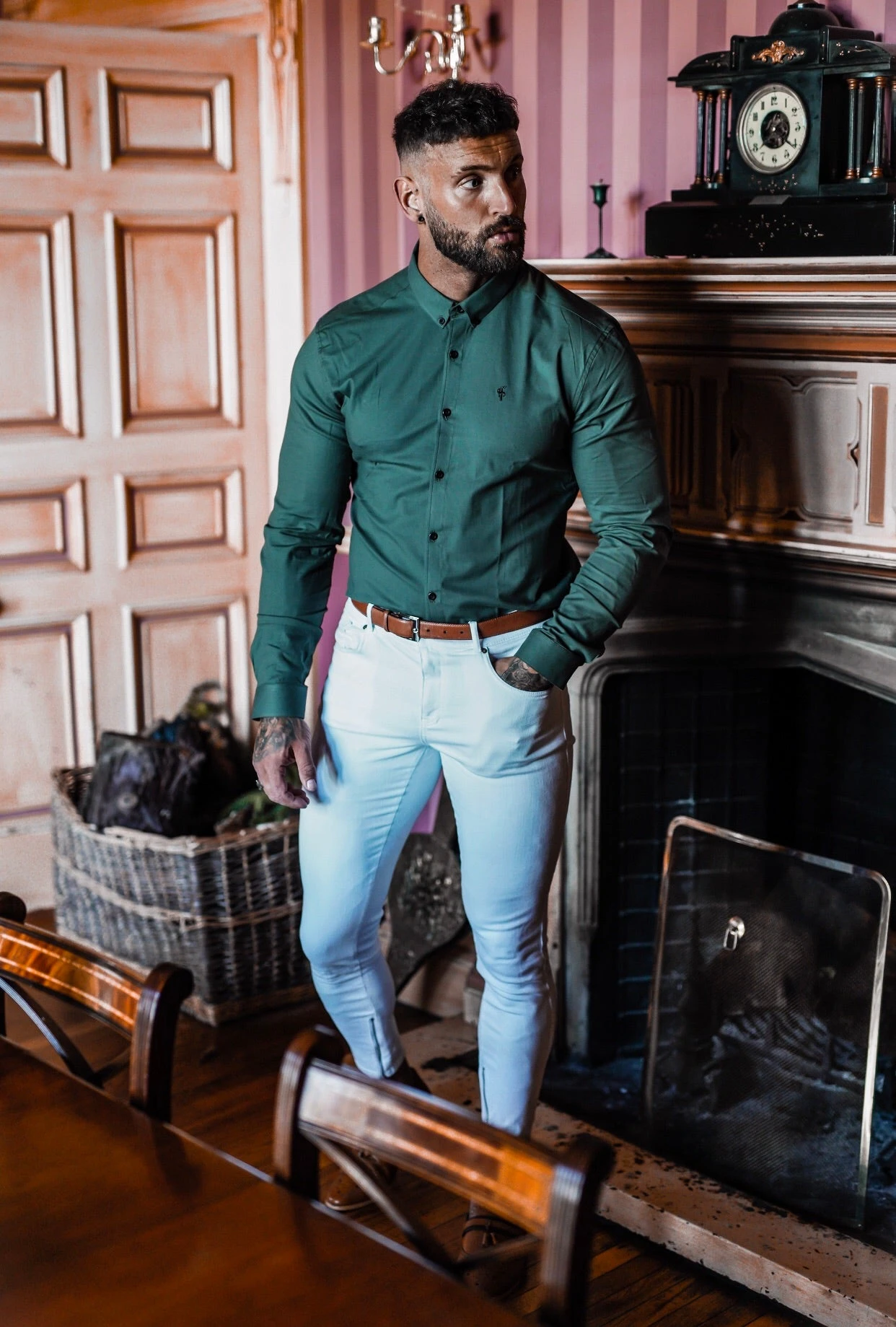 Made of the finest stretch cotton featuring the Father Sons emblem. This design is for the gentleman looking for a super slim fit. With added side panel details , this design will enhance a tapered look. Includes detachable bones to keep the collar looking firm.