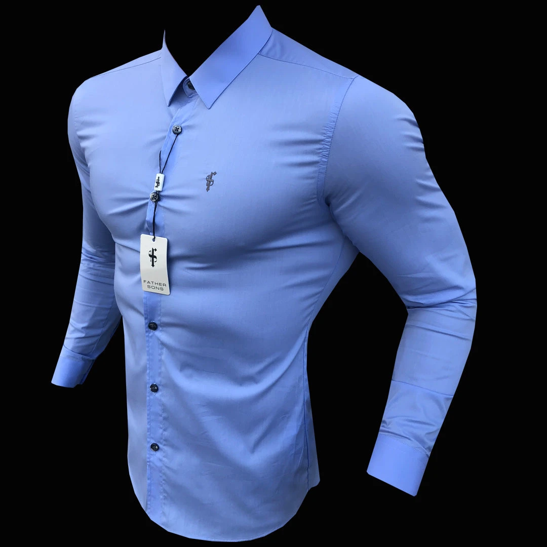 Made of the finest stretch cotton featuring the Father Sons emblem. This design is for the gentleman looking for a super slim fit. Includes detachable bones to keep the collar looking firm.