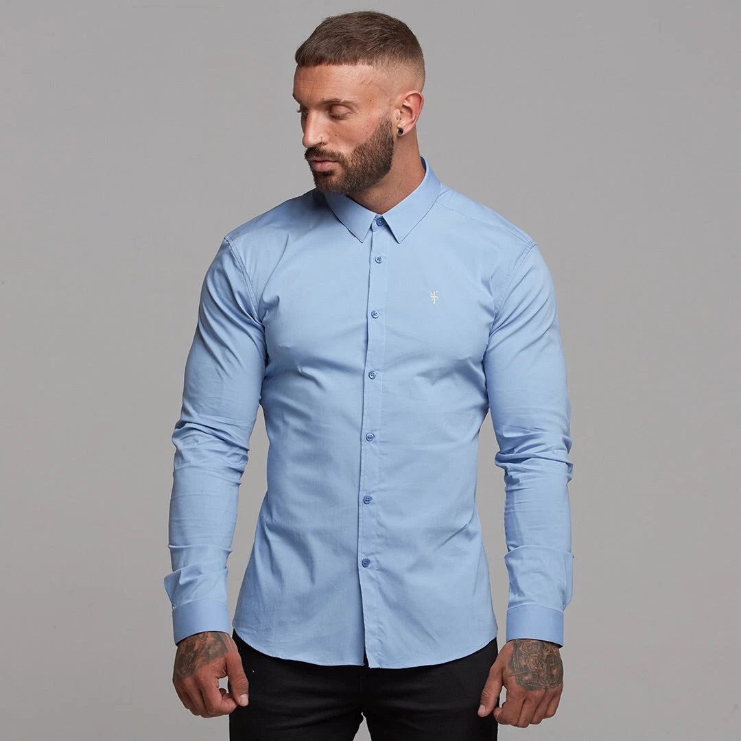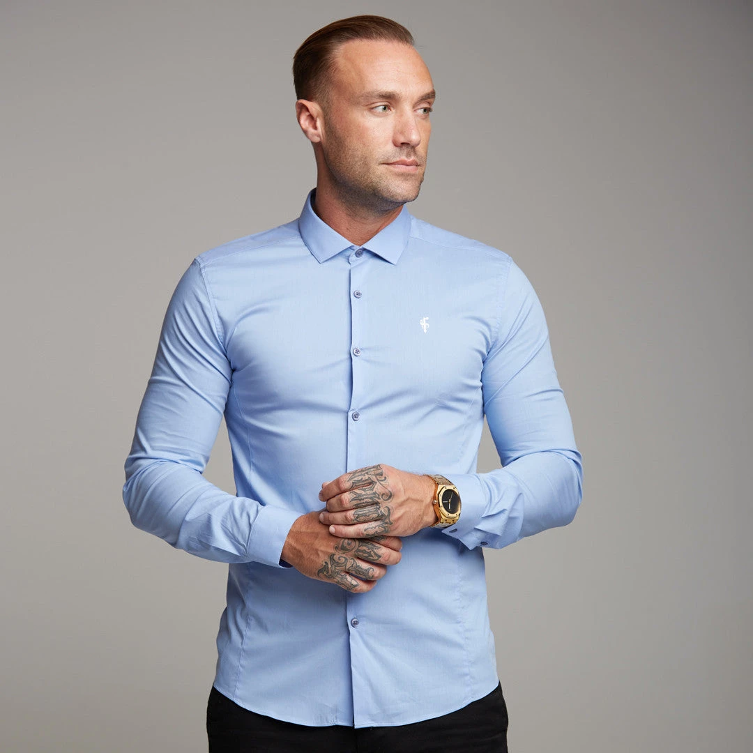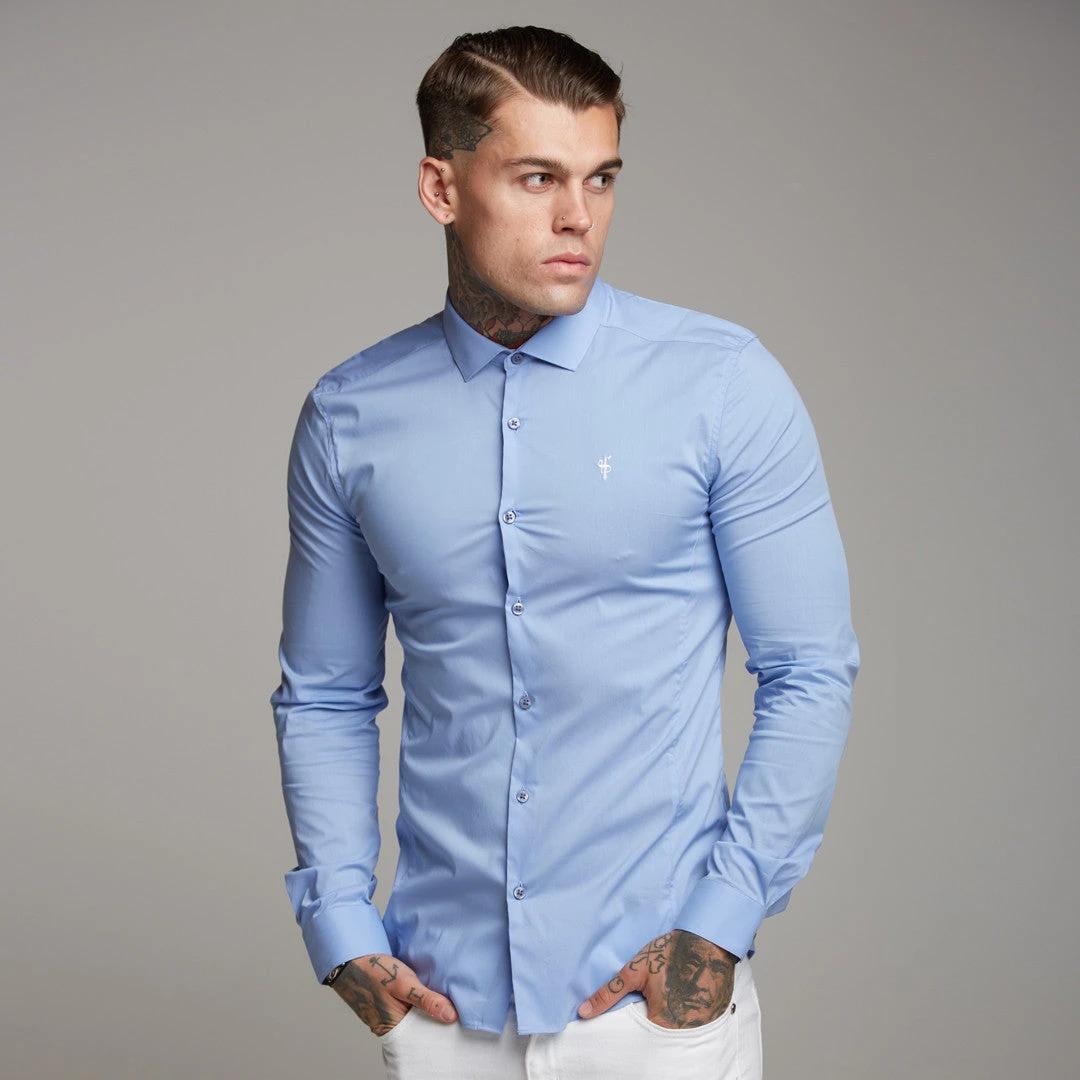 Father Sons Super Slim Stretch Classic Light Blue Panel Shirt – FS319