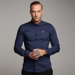 Made of the finest stretch cotton featuring the Father Sons emblem. This design is for the gentleman looking for a super slim fit. With added panel details on the front, back and sleeves, this design will enhance a tapered look. Includes detachable bones to keep the collar looking firm.