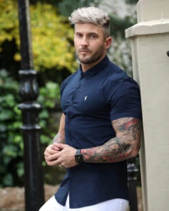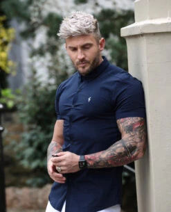 Father Sons Super Slim Stretch Classic Navy Short Sleeve With Button Down Collar- FS816