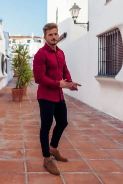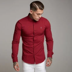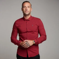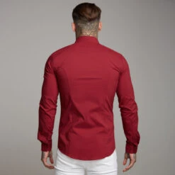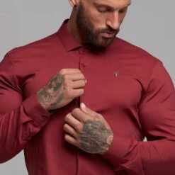 Father Sons Super Slim Stretch Classic Oxblood Panel Shirt (Grey embroidery) – FS318