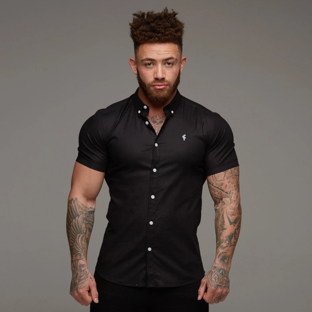 Father Sons Super Slim Stretch Classic Oxford Black Short Sleeve – FS303