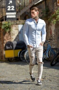 Father Sons Super Slim Stretch Classic Oxford Light Blue – FS306