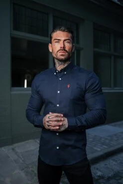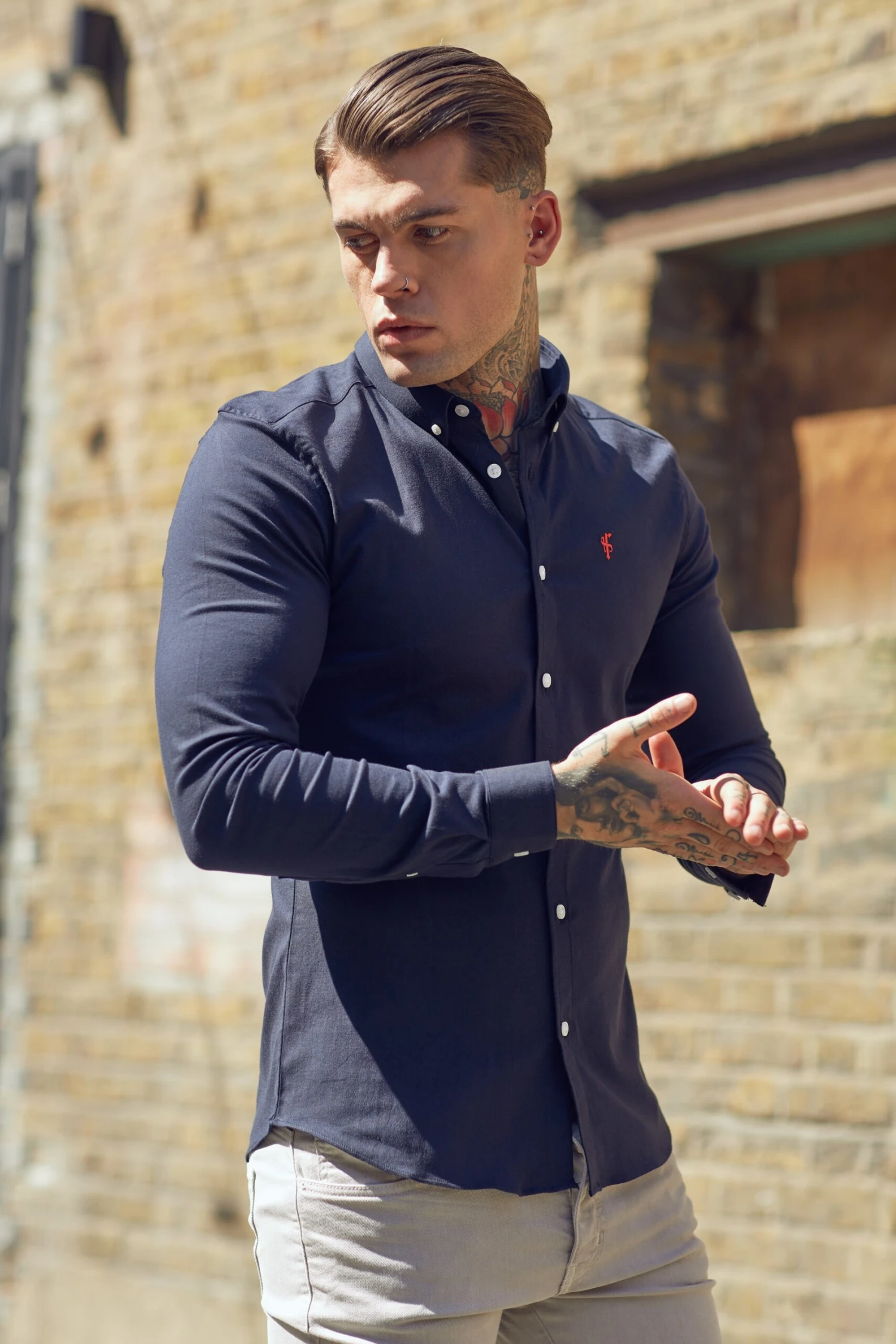 Father Sons Super Slim Stretch Classic Oxford Navy (Red Emblem)Â –Â FS308