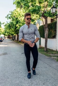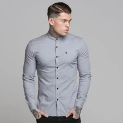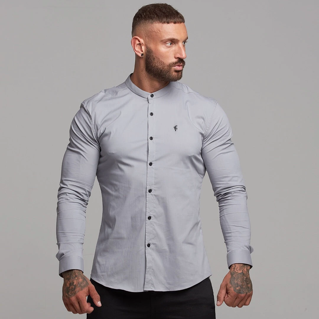 Father Sons Super Slim Stretch Classic Silver Grey Grandad  Collar- FS289
