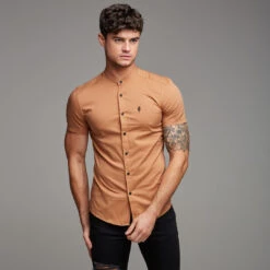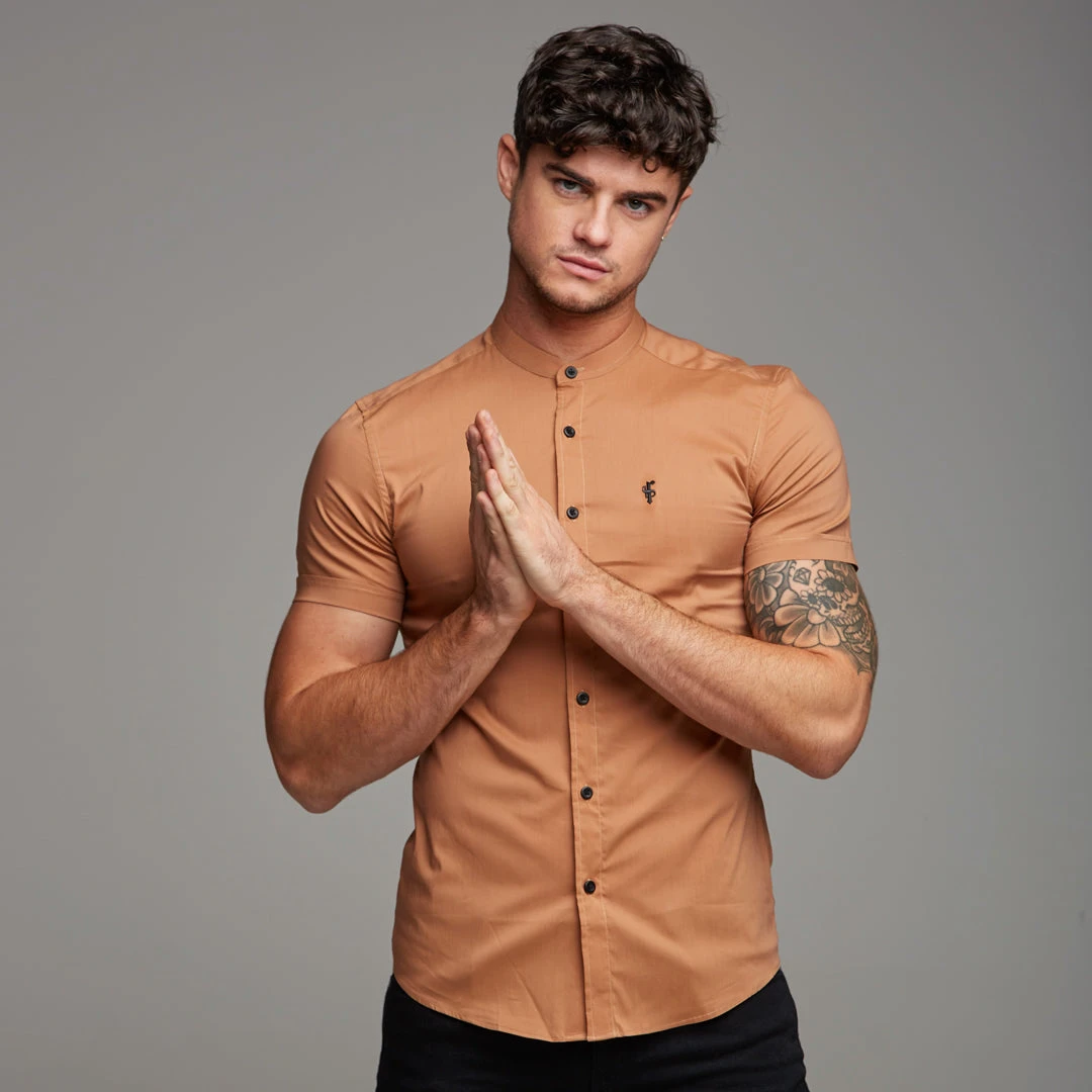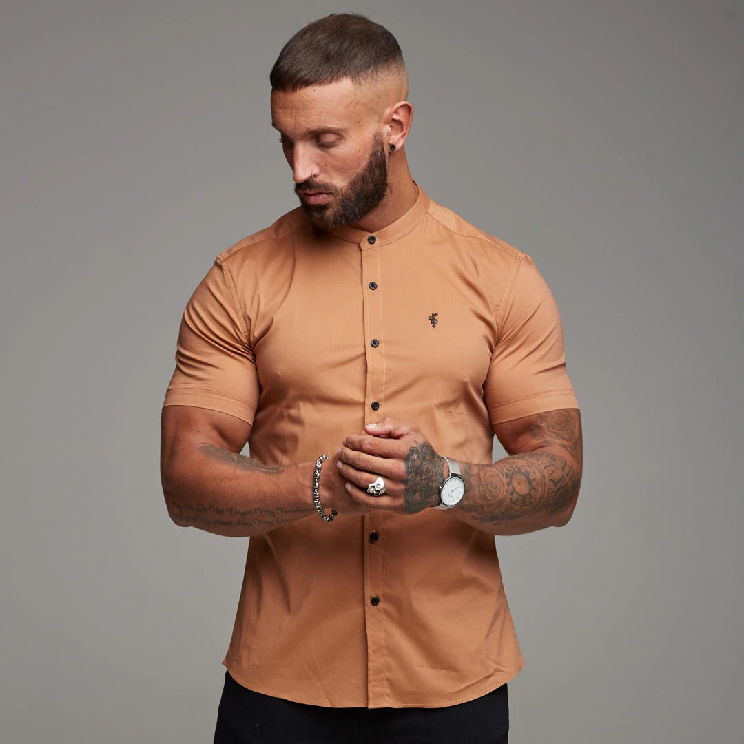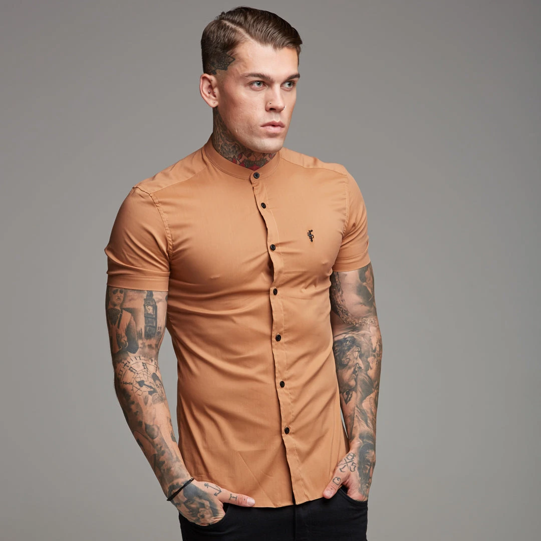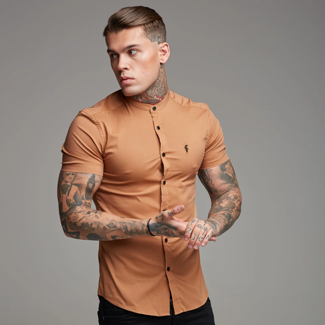 Father Sons Super Slim Stretch Classic Tan Grandad Short Sleeve –Â FS287
