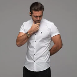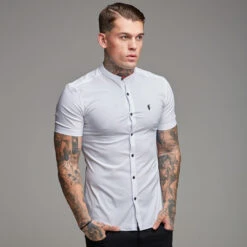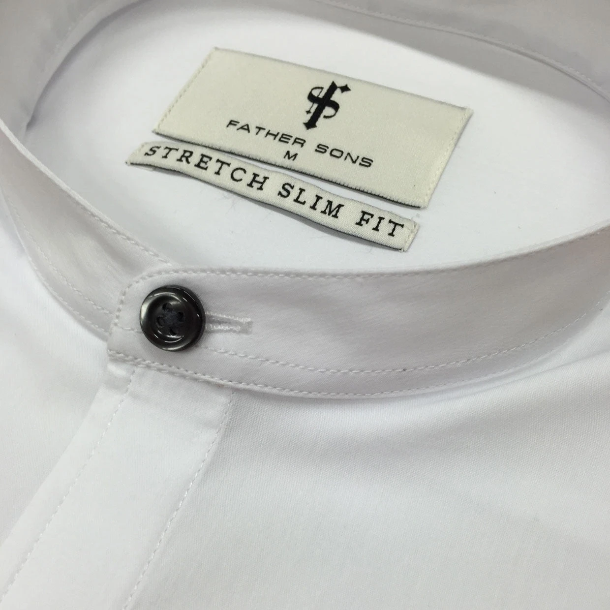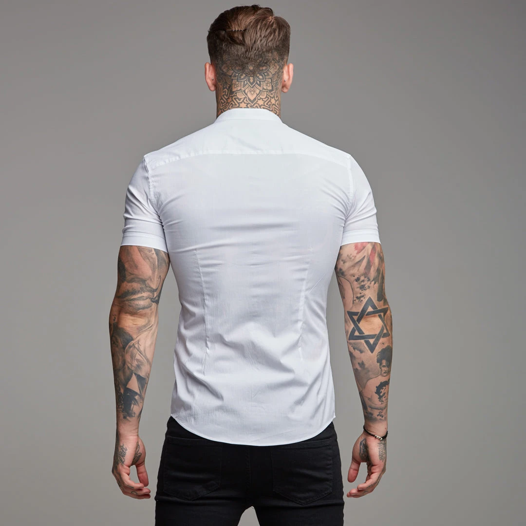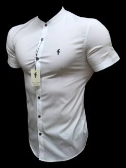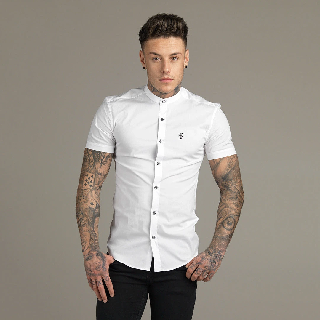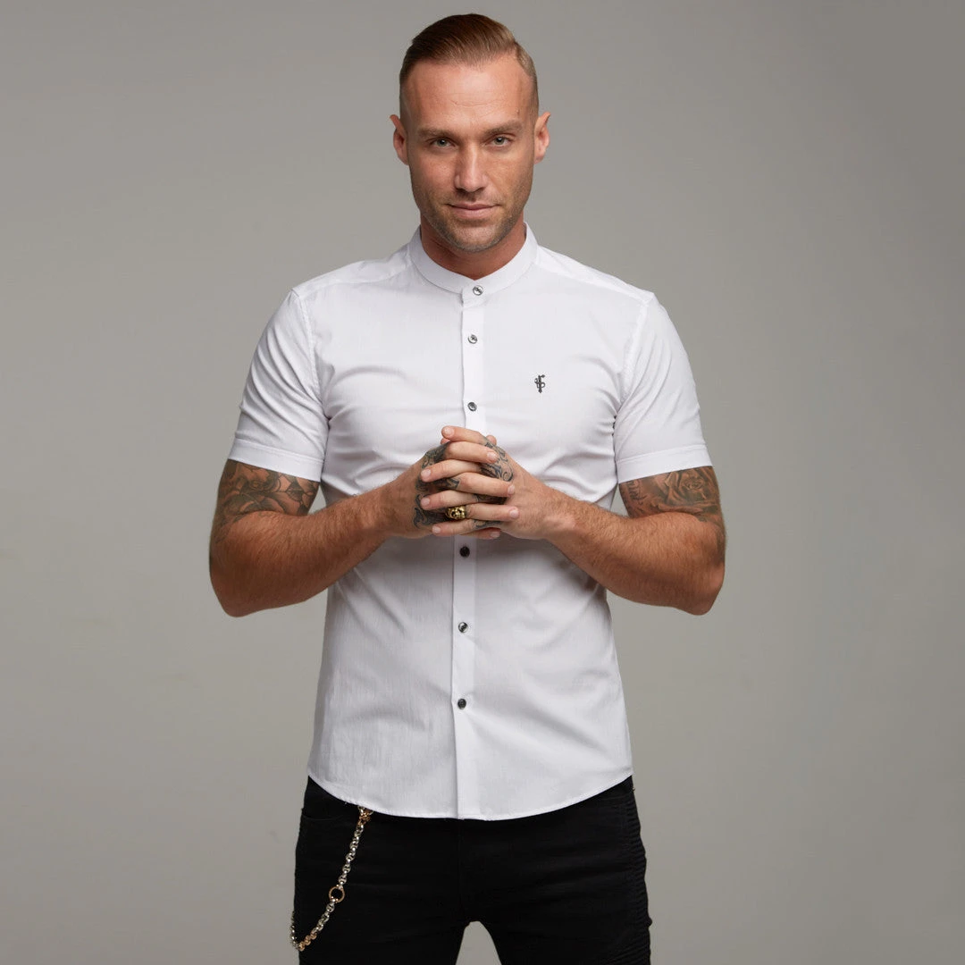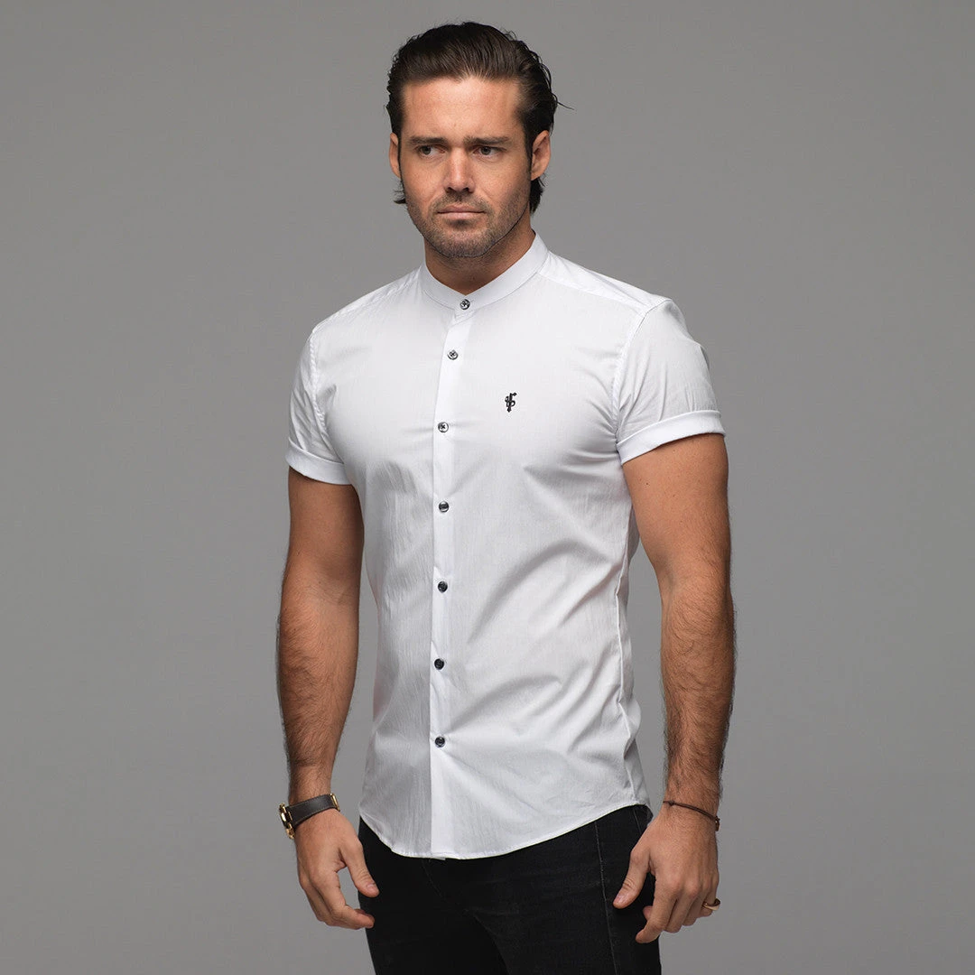 Father Sons Super Slim Stretch Classic White Grandad Collar Short Sleeve – FS172