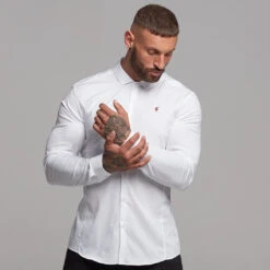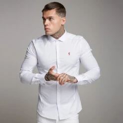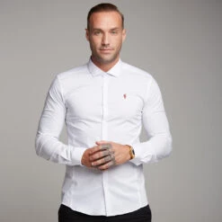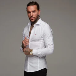 Father Sons Super Slim Stretch Classic White Panel Shirt (Burgundy embroidery) – FS316