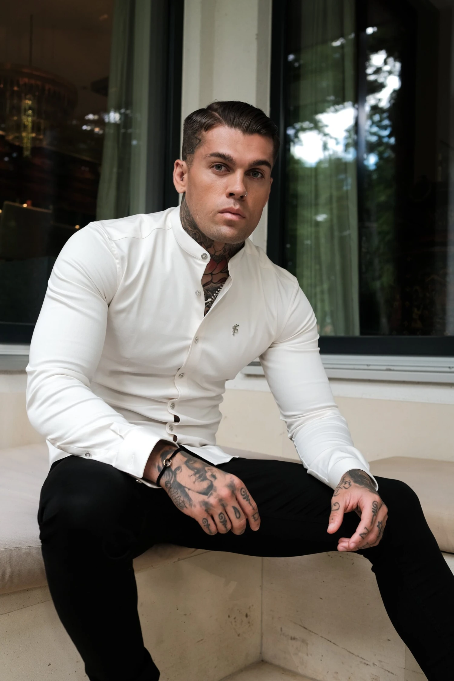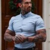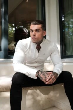 Made of the finest denim stretch cotton featuring the Father Sons Metal buttons and emblem. The shirt is also made up of Elastane Stretch, this allows the shirt to stretch for the perfect fitted shirt. This design is for the gentleman looking for a super slim fit.