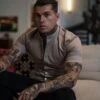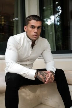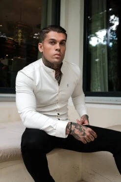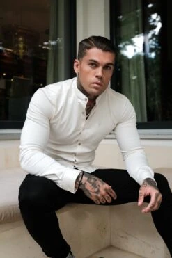 Father Sons Super Slim Stretch Cream Denim Long Sleeve Grandad collar with Metal Buttons and Decal Emblem – FS725