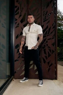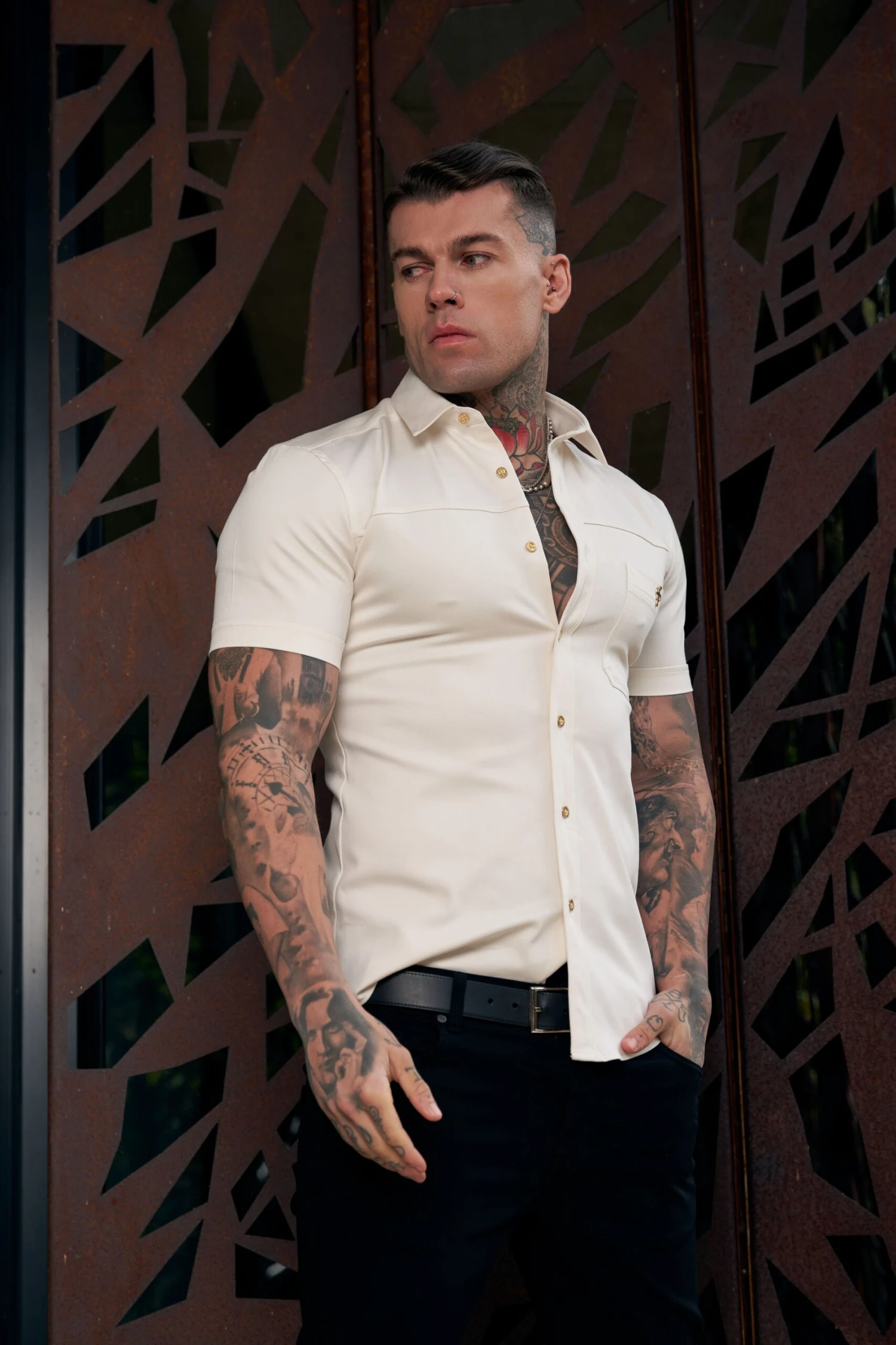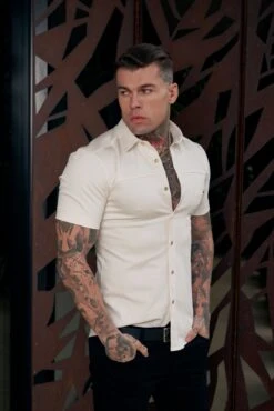 Father Sons Super Slim Stretch Cream Denim Short Sleeve with Horizontal Seam and Pocket – FS955