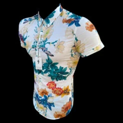 Father Sons Super Slim Stretch Ecru with Vibrant Print Short Sleeve with Button Down Collar – FS865