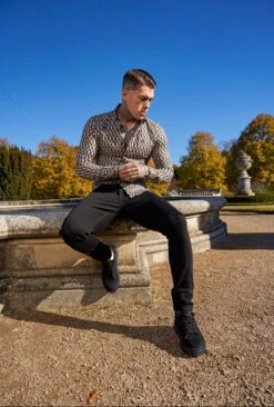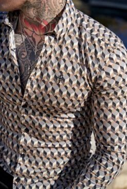 Father Sons Super Slim Stretch Grey / Beige Print Long Sleeve with Button Down Collar – FS904