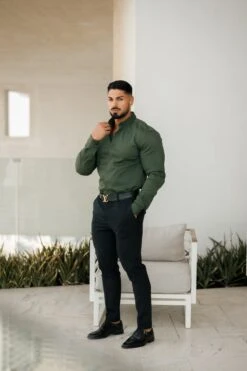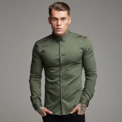 Made of the finest denim stretch cotton featuring the Father Sons emblem. The shirt is also made up of Elastane, this allows the shirt to stretch for the perfect fitted shirt. This design is for the gentleman looking for a super slim fit.