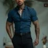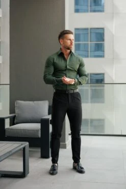 Made of the finest denim stretch cotton featuring the Father Sons emblem. The shirt is also made up of Elastane, this allows the shirt to stretch for the perfect fitted shirt. This design is for the gentleman looking for a super slim fit.
