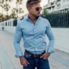 Made of the finest denim stretch cotton featuring the Father Sons Metal emblem. The shirt is also made up of Elastane Stretch, this allows the shirt to stretch for the perfect fitted shirt. This design is for the gentleman looking for a super slim fit.