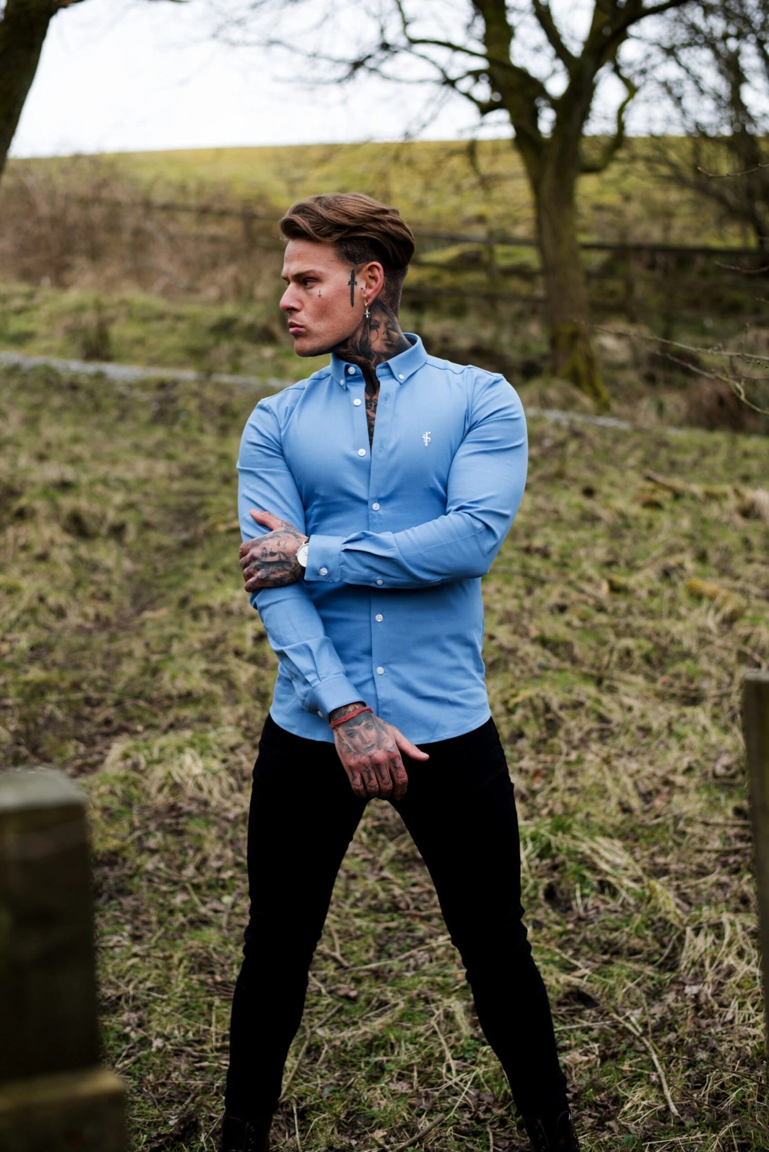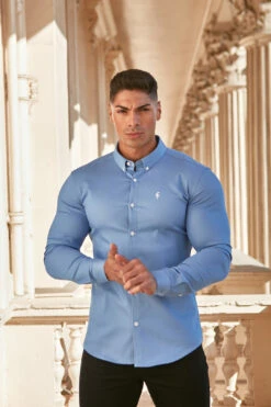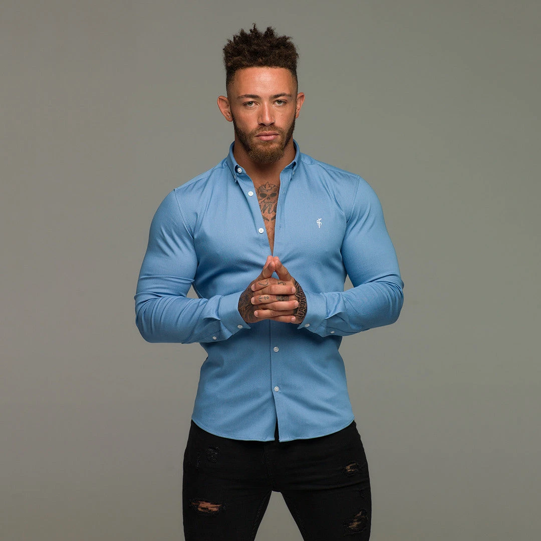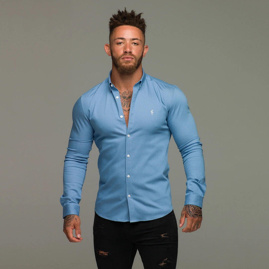 Made of the finest denim stretch cotton featuring the Father Sons emblem. The shirt is also made up of Elastane, this allows the shirt to stretch for the perfect fitted shirt. This design is for the gentleman looking for a super slim fit.