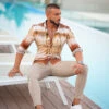 Father Sons Super Slim Stretch Light Blue Denim Short Sleeve – FS208
