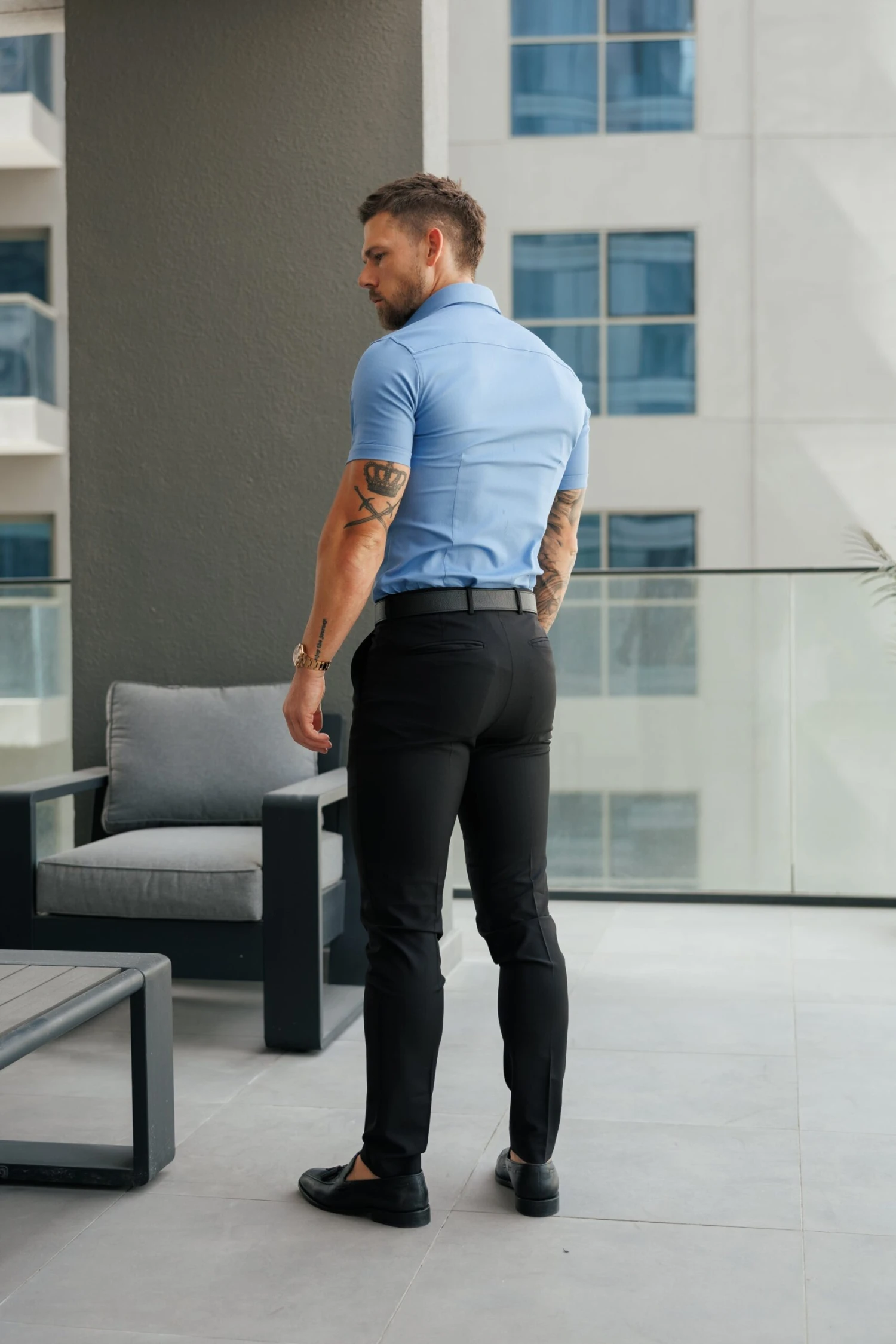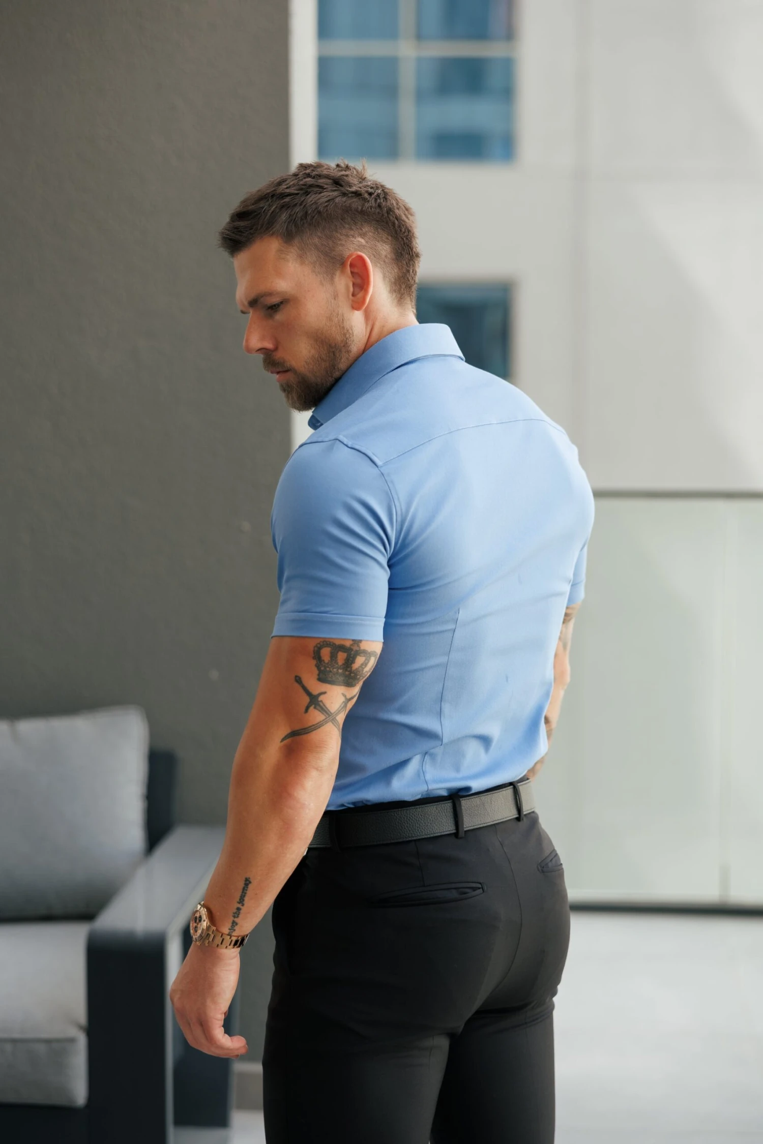 Father Sons Super Slim Stretch Light Blue Denim Short Sleeve with Cutaway Collar – FS1152