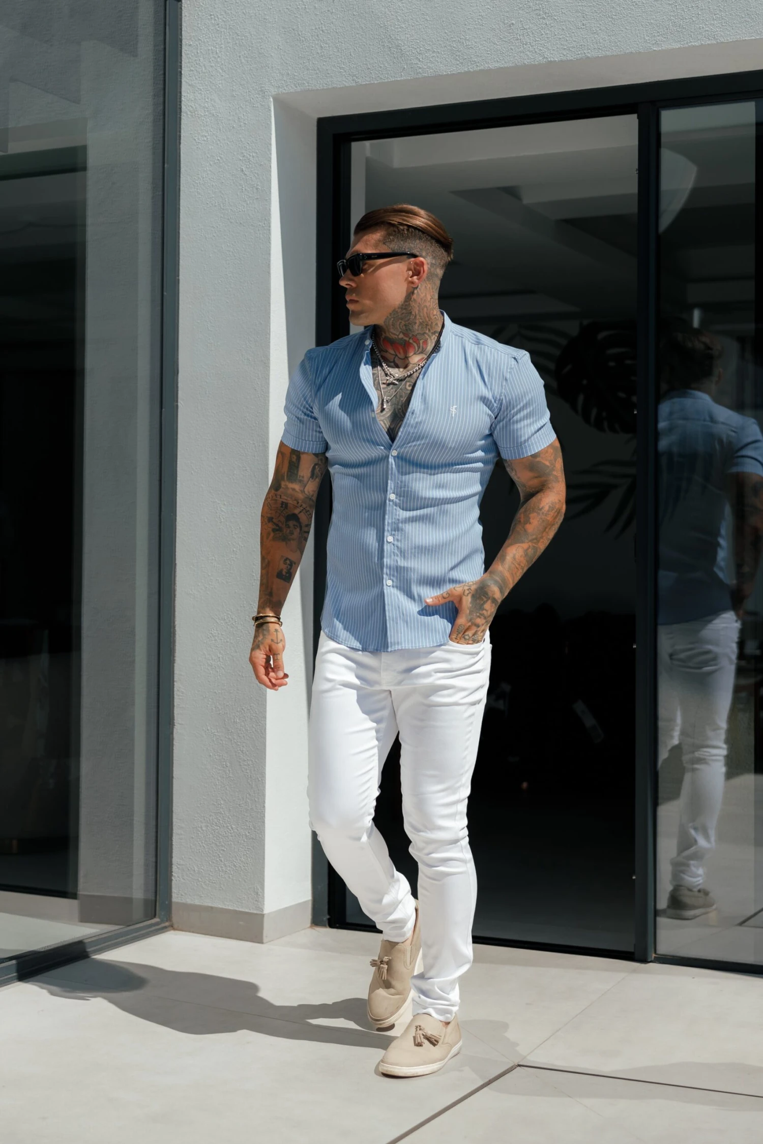 Made of the finest yarns featuring the Father Sons emblem. This design is for the gentleman looking for a super slim fit with a stylish Grandad collar.