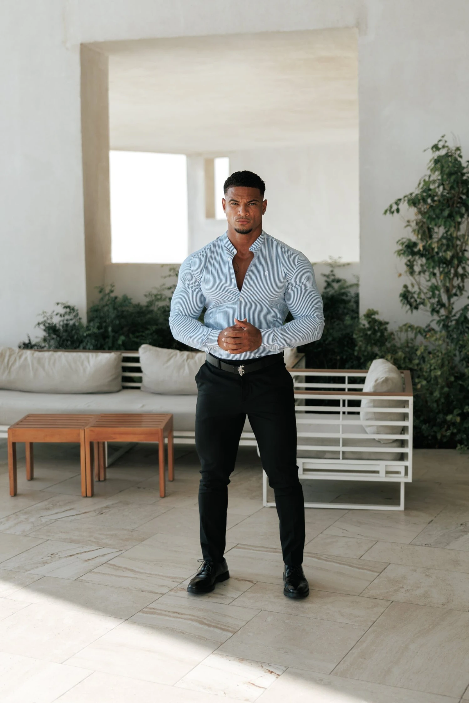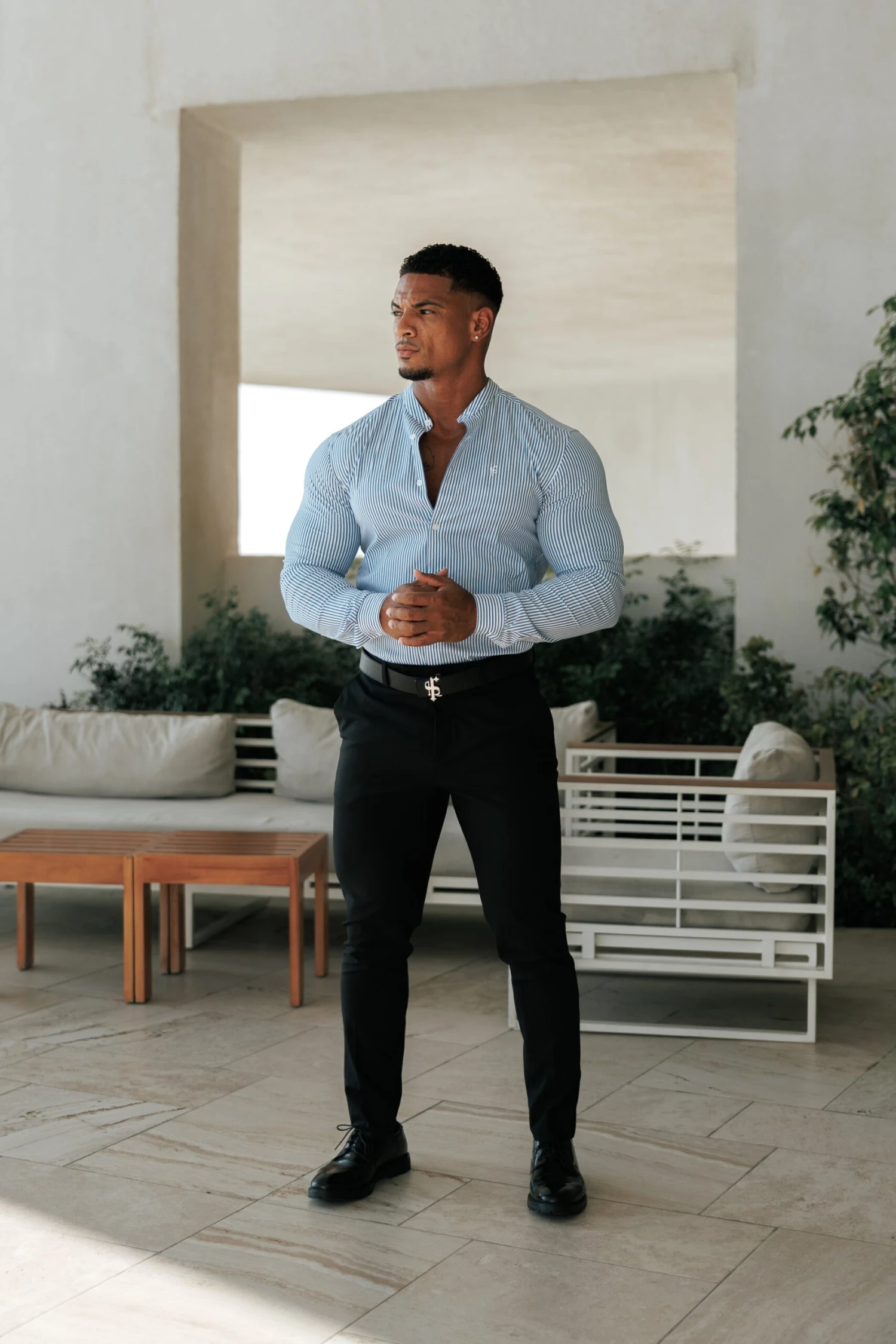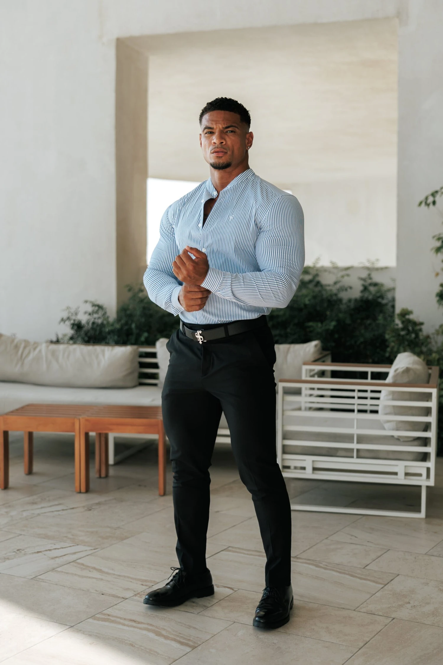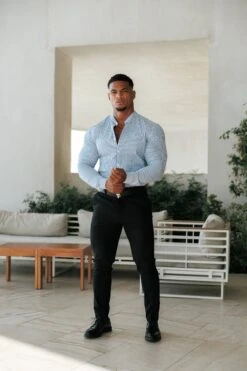 Made of the finest stretch cotton featuring the Father Sons emblem. This design is for the gentleman looking for a super slim fit. Includes a grandad collar for a holiday vibe.