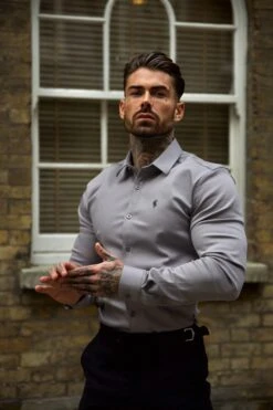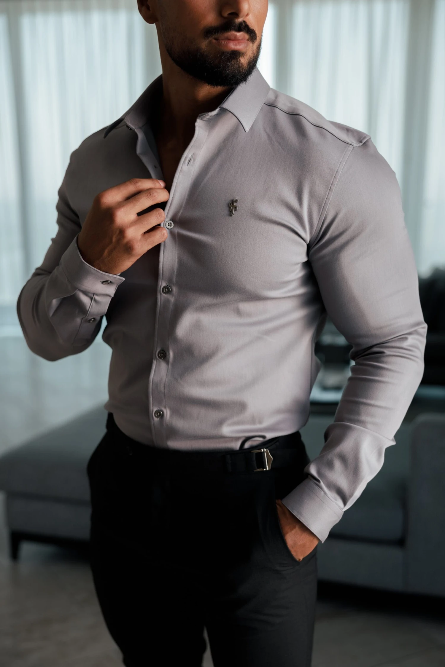Father Sons Super Slim Stretch Mid Grey Denim Long Sleeve With Metal Buttons and Decal – FS1022