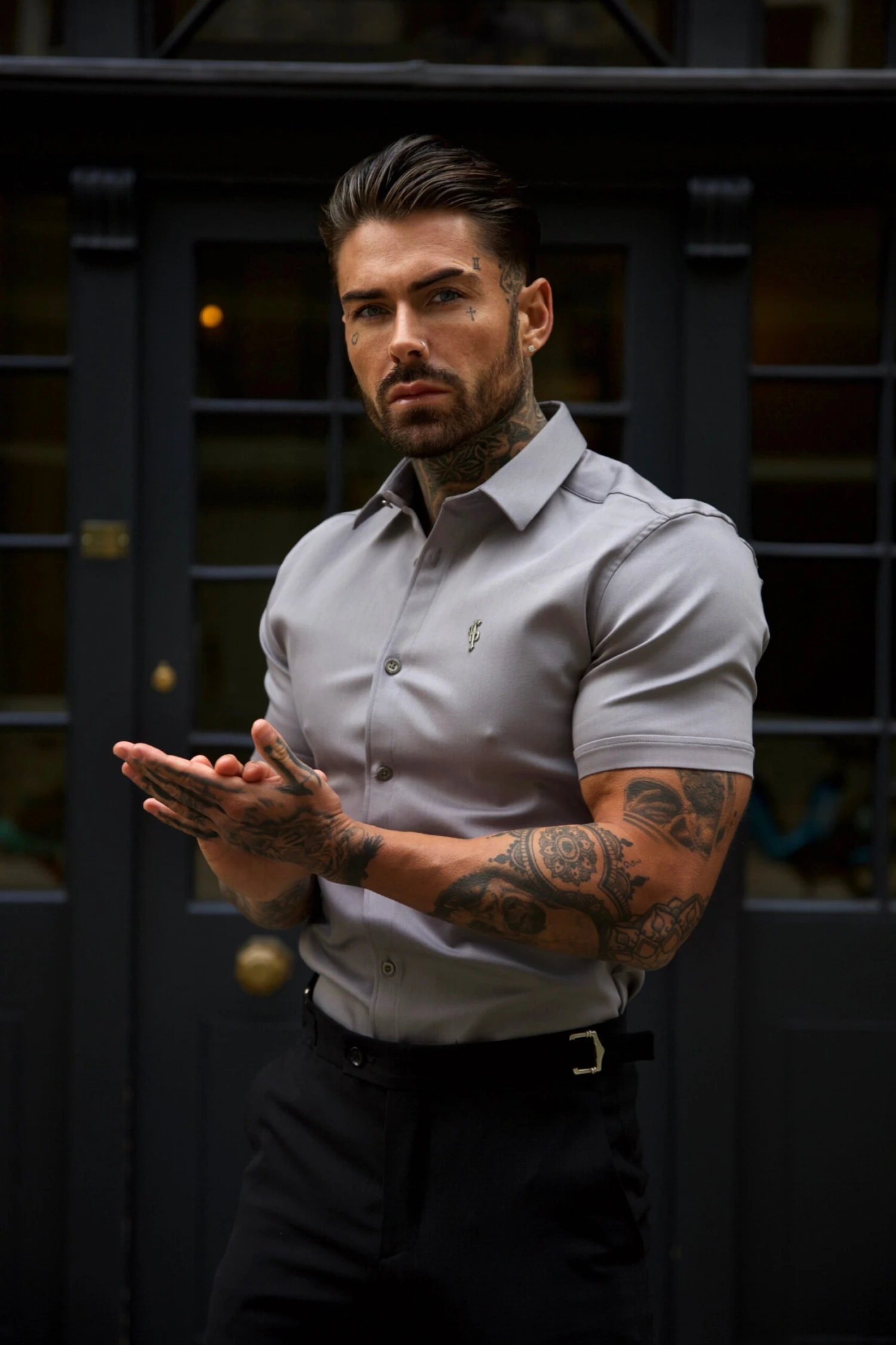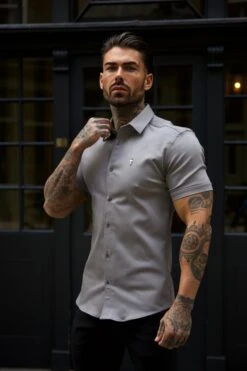 Father Sons Super Slim Stretch Mid Grey Denim Short Sleeve With Button Down Collar – FS1023