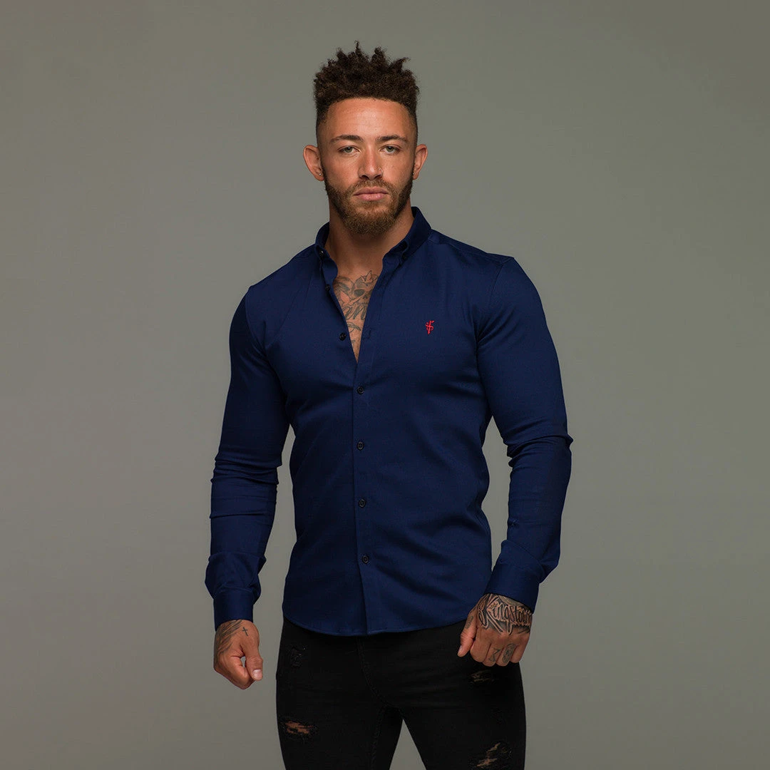 Made of the finest denim stretch cotton featuring the Father Sons emblem. The shirt is also made up of Elastane, this allows the shirt to stretch for the perfect fitted shirt. This design is for the gentleman looking for a super slim fit.