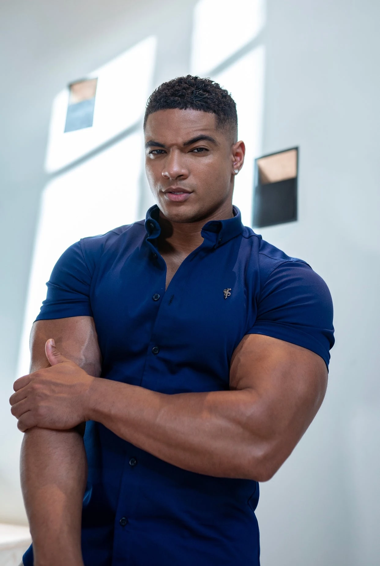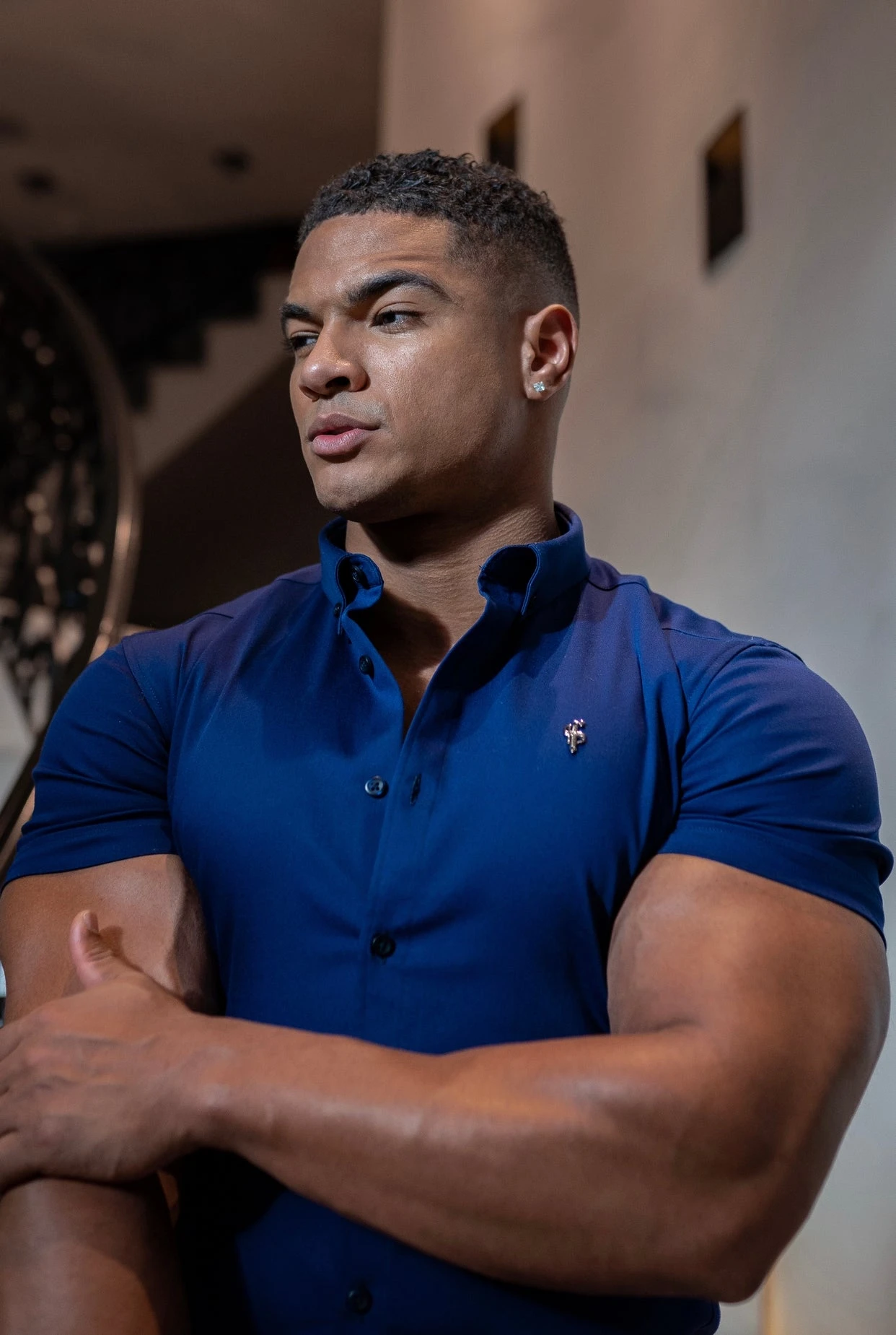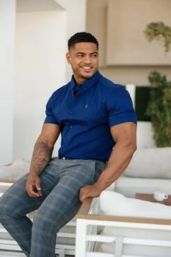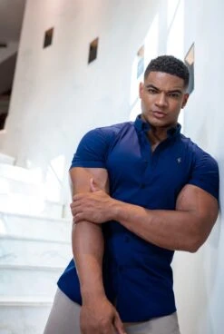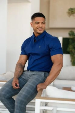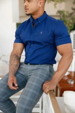 Father Sons Super Slim Stretch Navy Denim Short Sleeve with Metal Decal Emblem – FS637