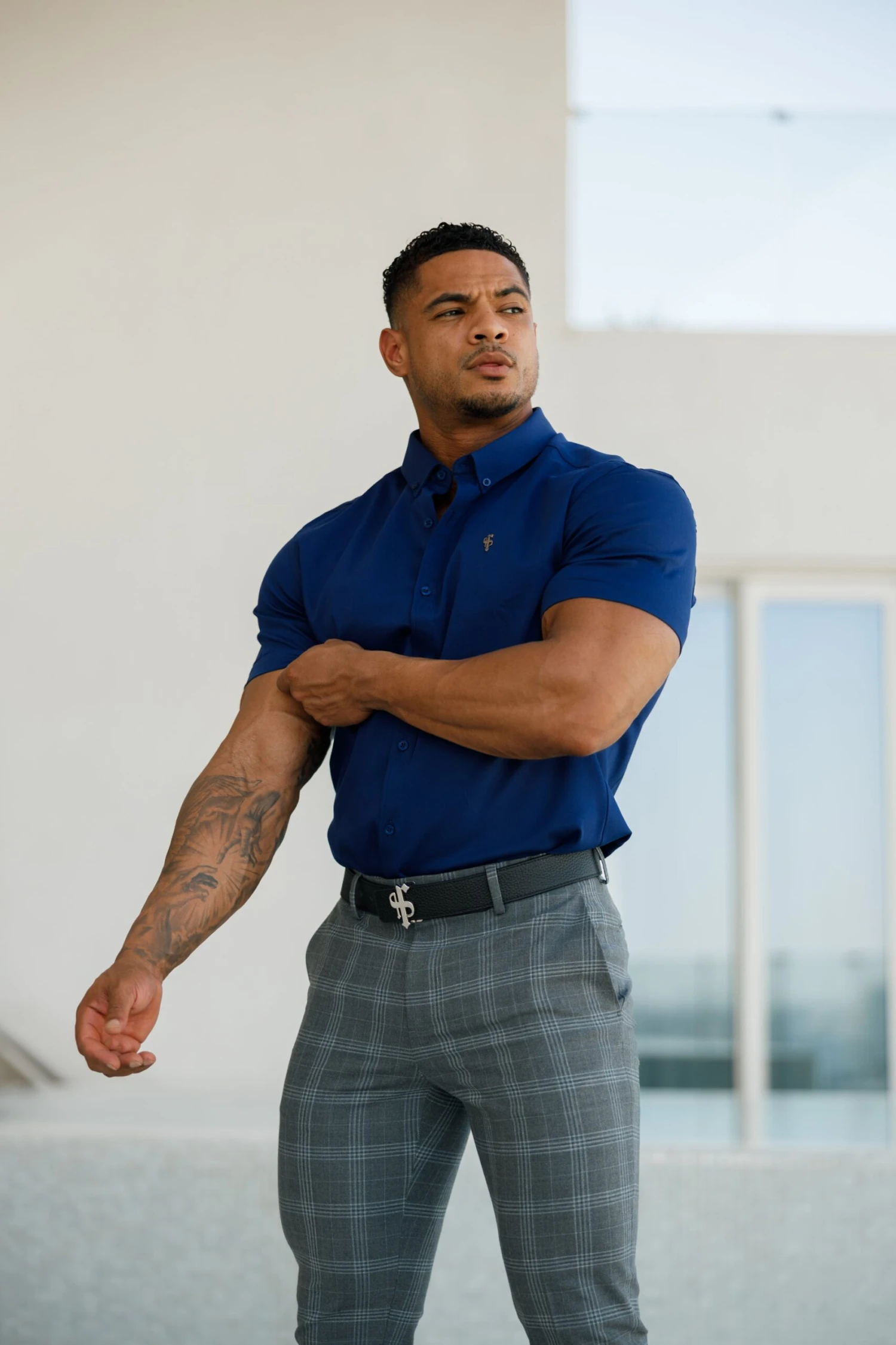 Made of the finest denim stretch cotton featuring the Father Sons Metal emblem. The shirt is also made up of Elastane Stretch, this allows the shirt to stretch for the perfect fitted shirt. This design is for the gentleman looking for a super slim fit.