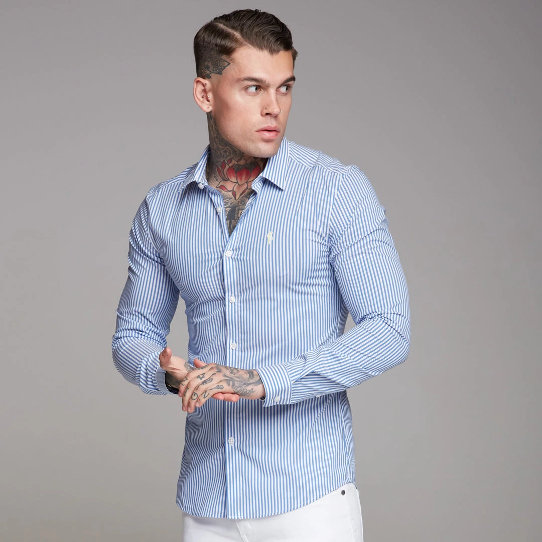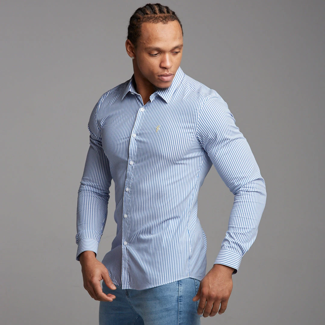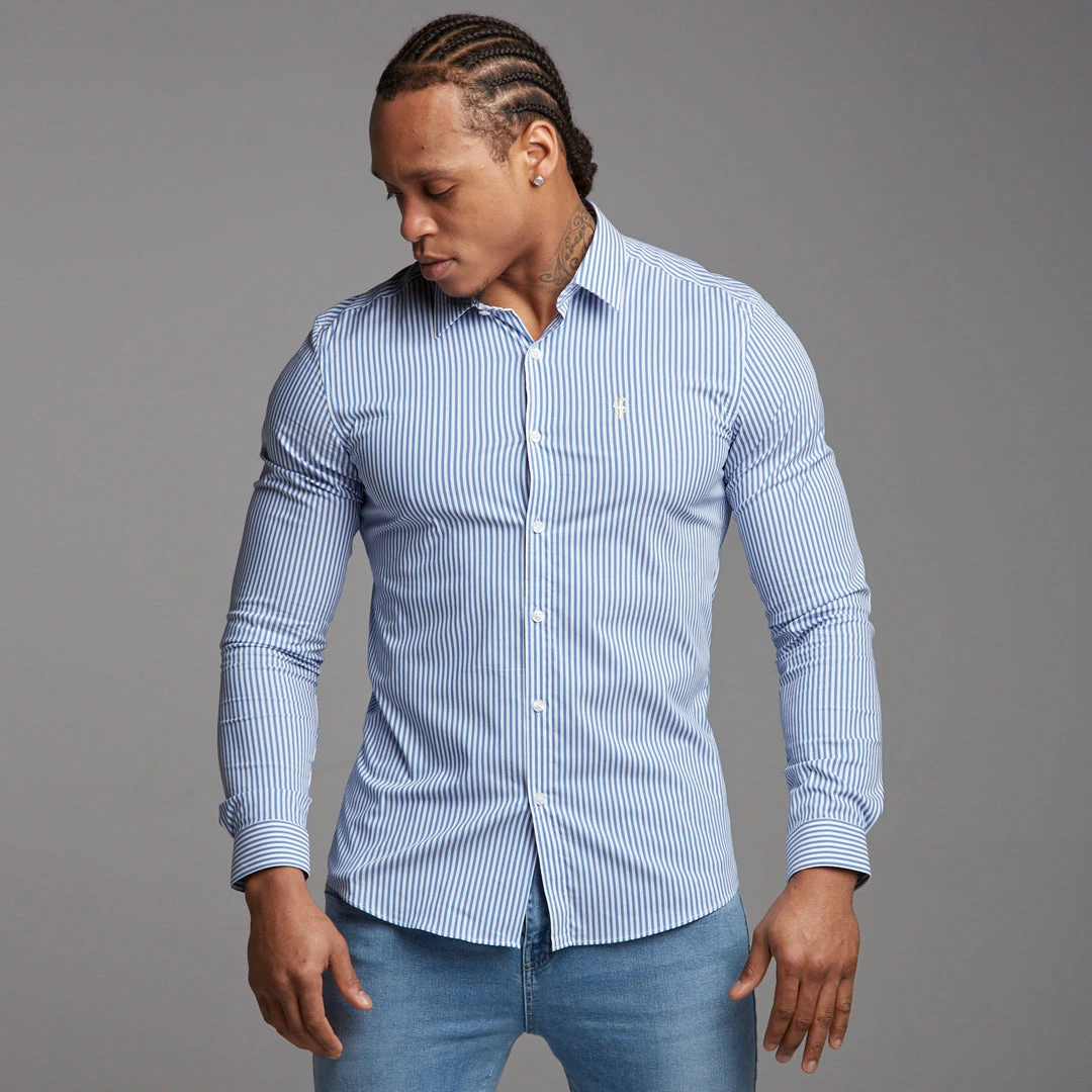 Father Sons Super Slim Stretch White & Blue Stripe (Yellow Emblem) – FS364