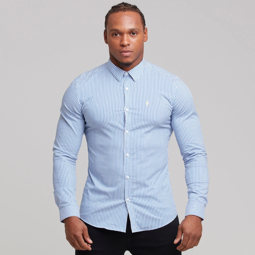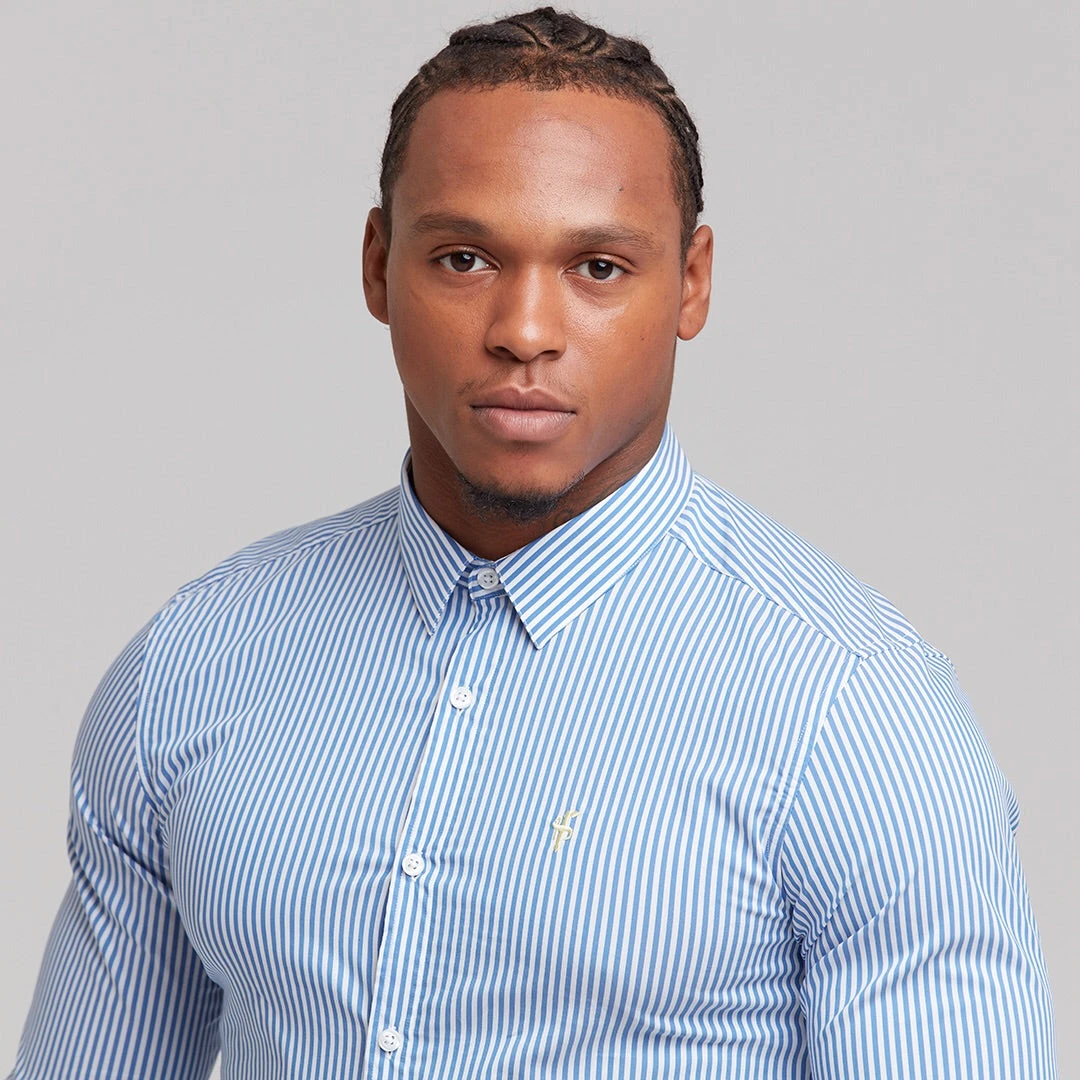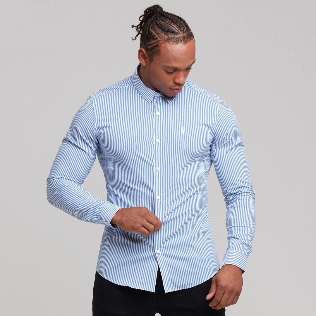 Father Sons Super Slim Stretch White & Blue Stripe (Yellow Emblem) – FS364