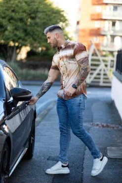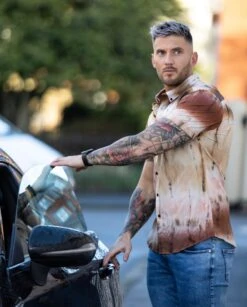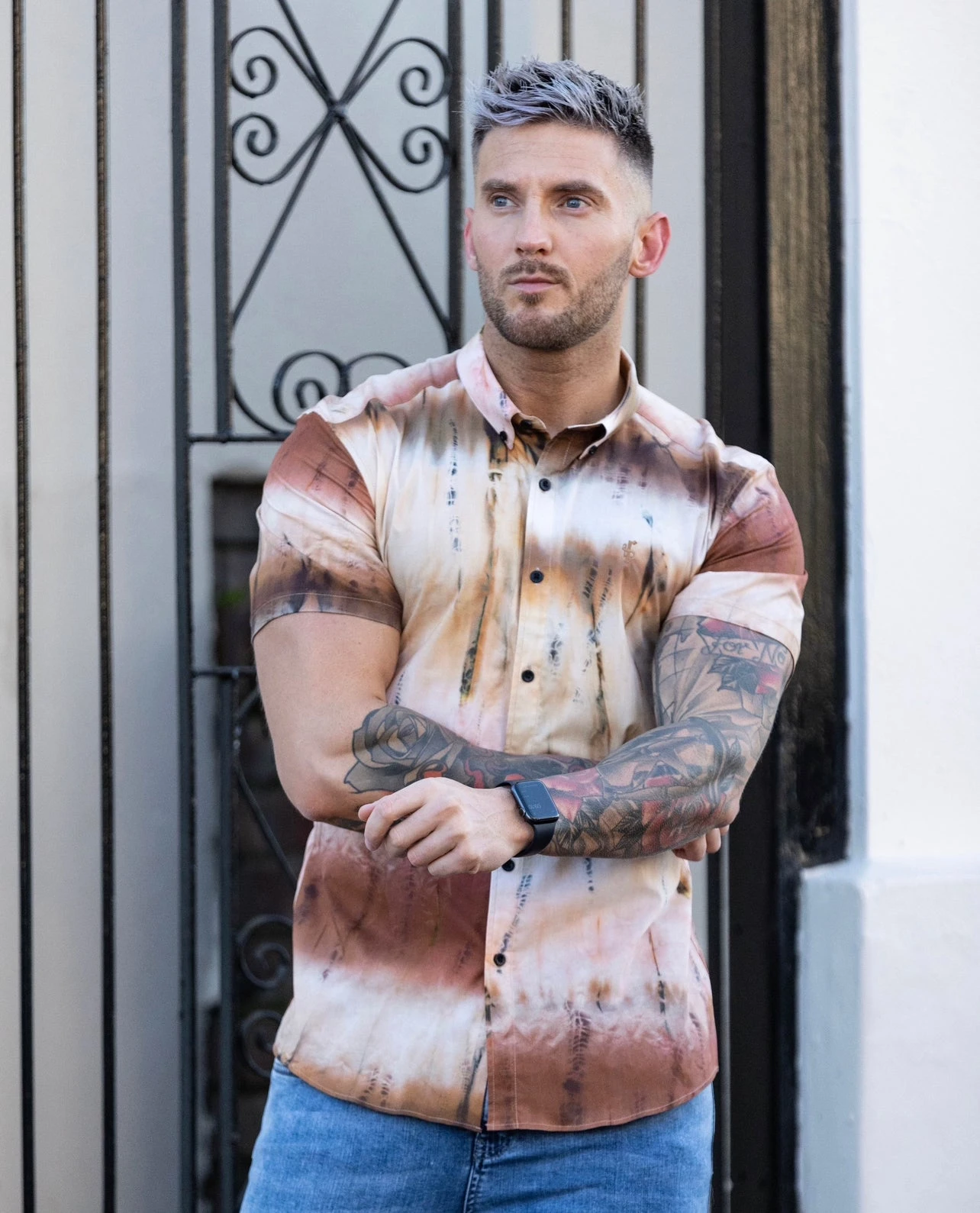 Father Sons Super Slim Stretch Neutral Tie Dye Print Short Sleeve with Button Down Collar – FS813