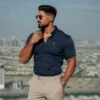 Made of the finest stretch yarns featuring the Father Sons metal emblem and buttons. This design is for the gentleman looking for a super slim fit with a Grandad collar.