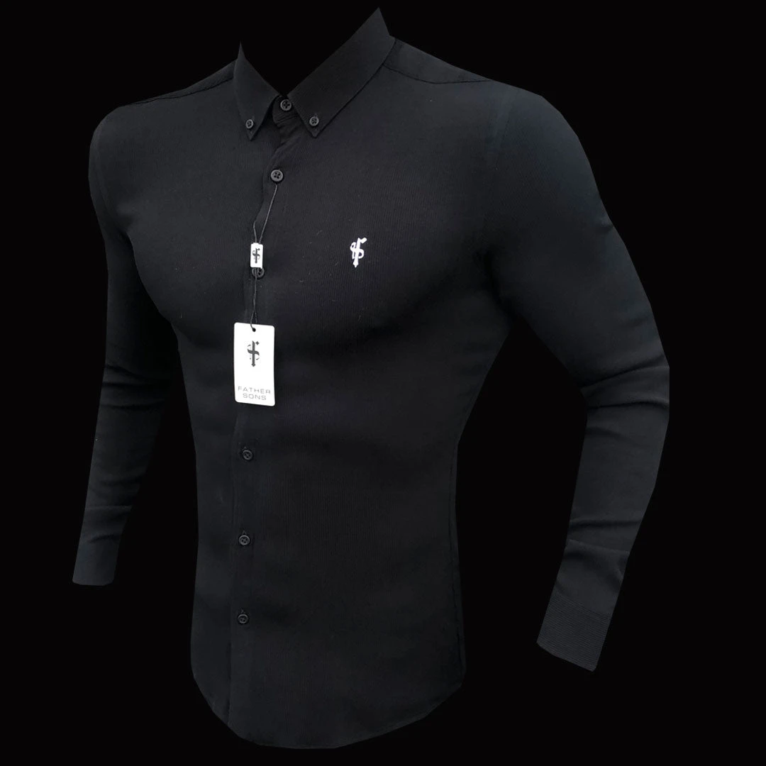Made of the finest textured stretch cotton creating a ribbed effect and featuring the Father Sons emblem. The shirt is also made up of Elastane, this allows the shirt to stretch for the perfect fitted shirt. This design is for the gentleman looking for a super slim fit.