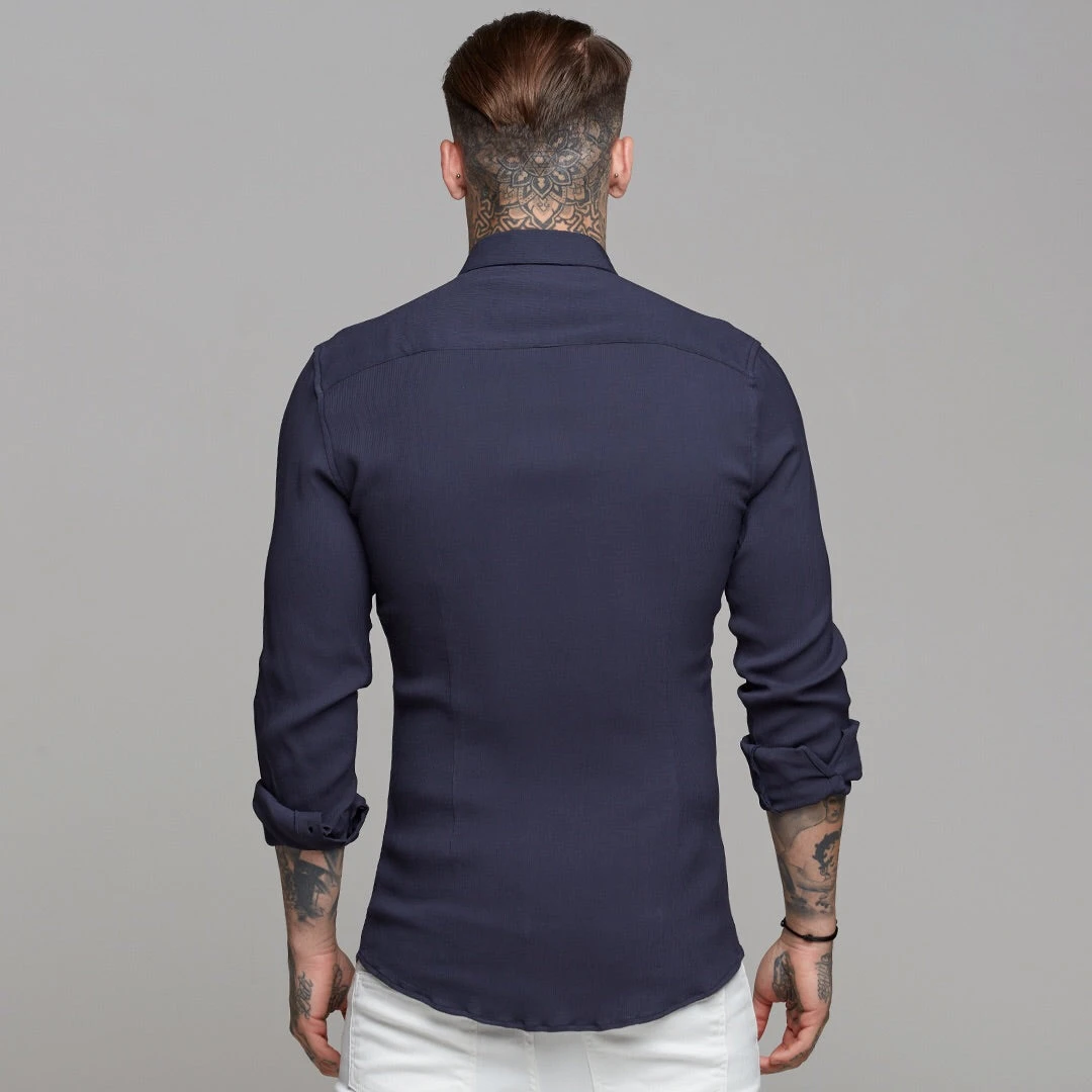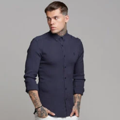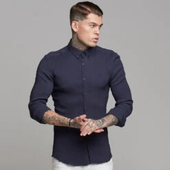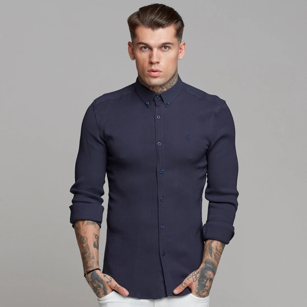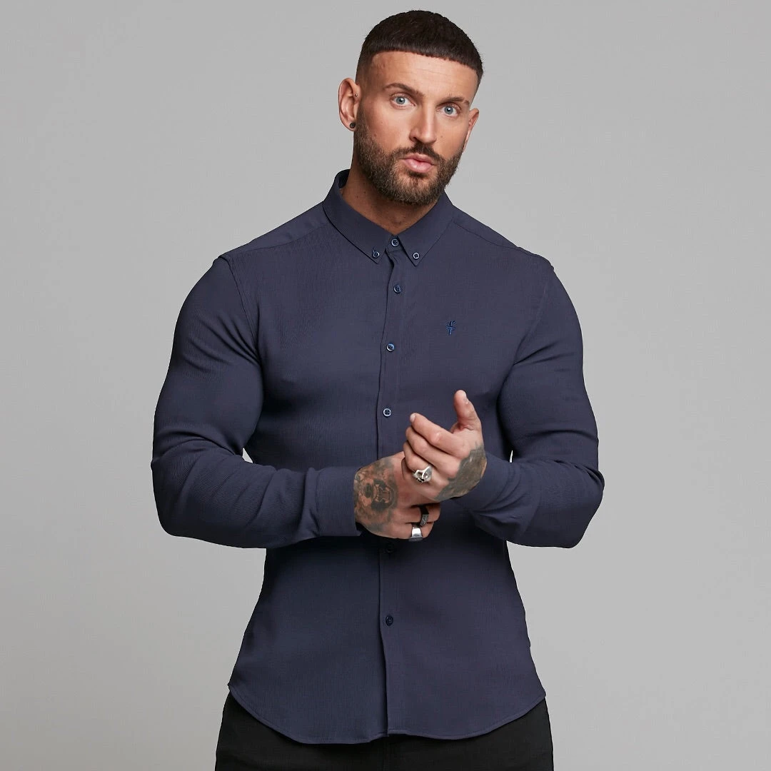 Made of the finest textured stretch cotton creating a ribbed effect and featuring the Father Sons emblem. The shirt is also made up of Elastane, this allows the shirt to stretch for the perfect fitted shirt. This design is for the gentleman looking for a super slim fit.