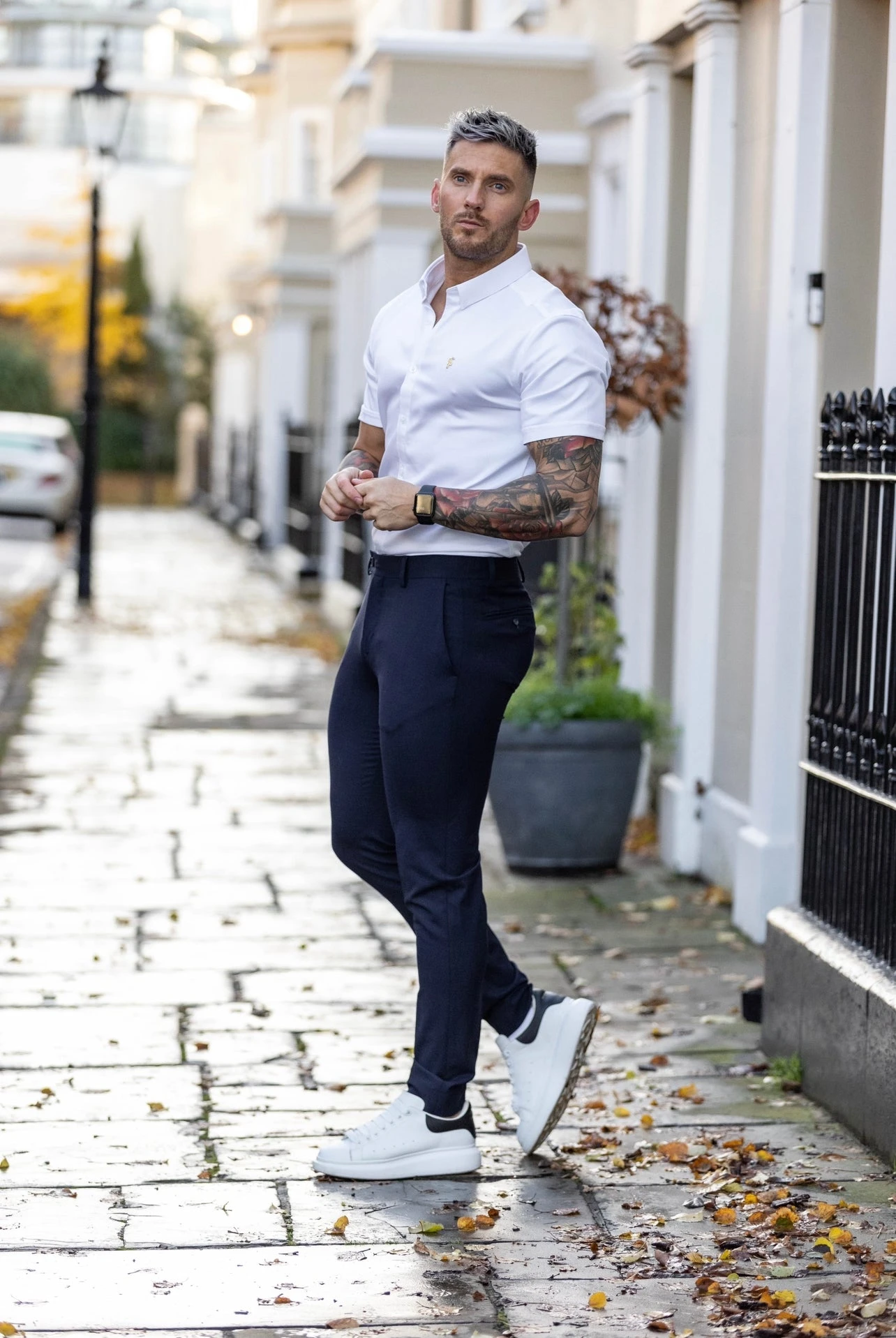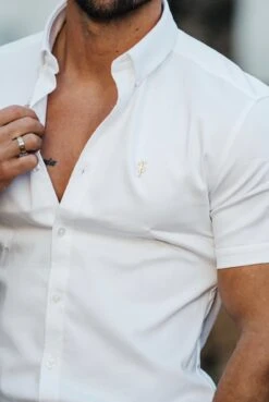 Father Sons Super Slim Stretch White Denim Short Sleeve with Gold Metal Decal Emblem – FS924